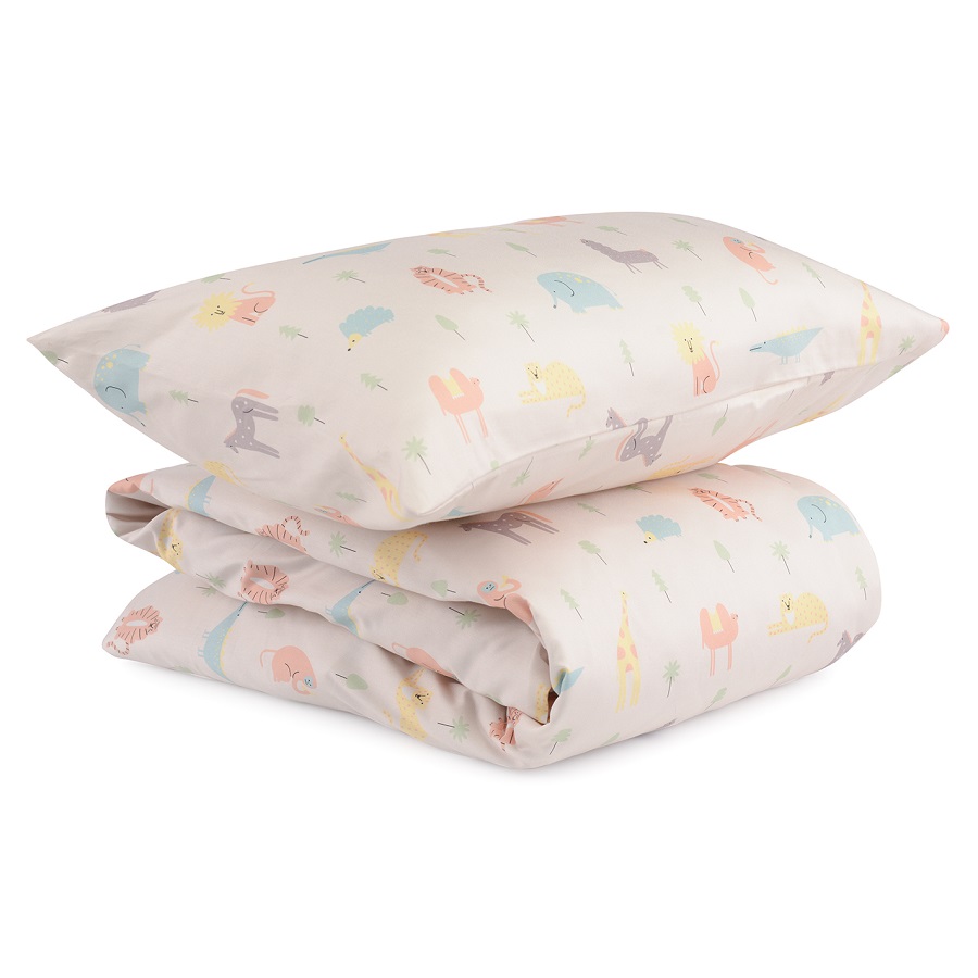 Комплект постельного белья из сатина с принтом Animalia world из коллекции Tiny world, 110х140 см
