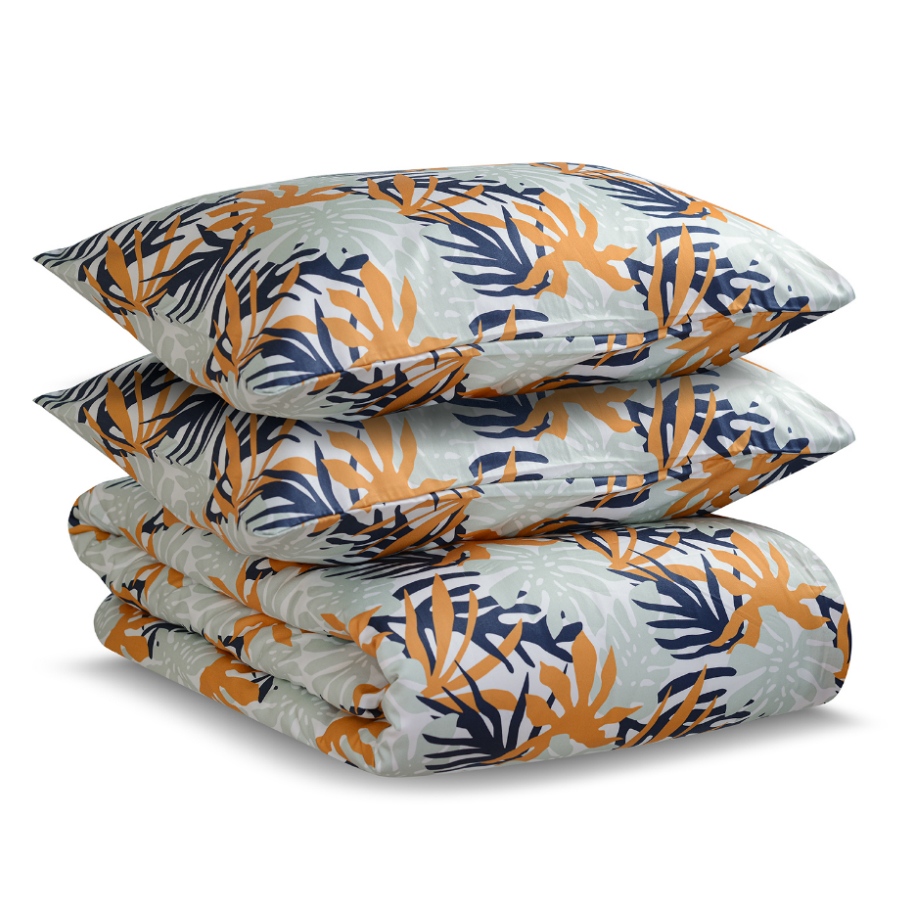 В комплекте: пододеяльник 200х220 см, застегивающийся на пуговицы, и две наволочки 50х70 см с системой закрытия клапан.