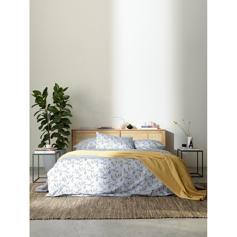 "Комплект постельного белья из сатина с растительным принтом ",Ягоды тайги", из коллекции Russian North добавит атмосферу природы русского севера в ваш интерьер. Разбавив его наволочками и простыней светло-серого или горчичного цветов из коллекции Essential, вы получите готовое дизайнерское решение для вашей спальни. Хлопковый сатин плотностью 210 ТС приятен на ощупь и обладает естественным блеском. Он не теряет внешний вид даже после множества стирок, не деформируется и не линяет, на нем не образуются катышки.