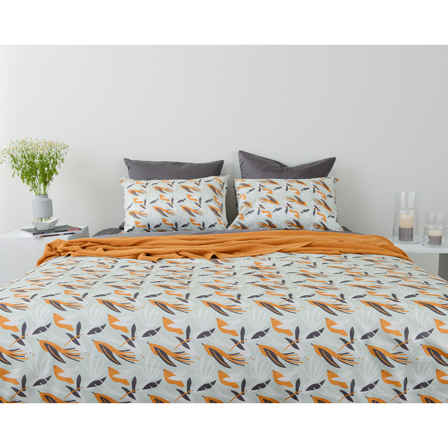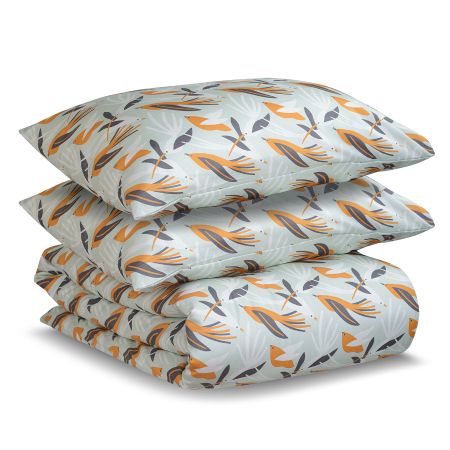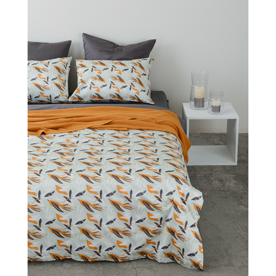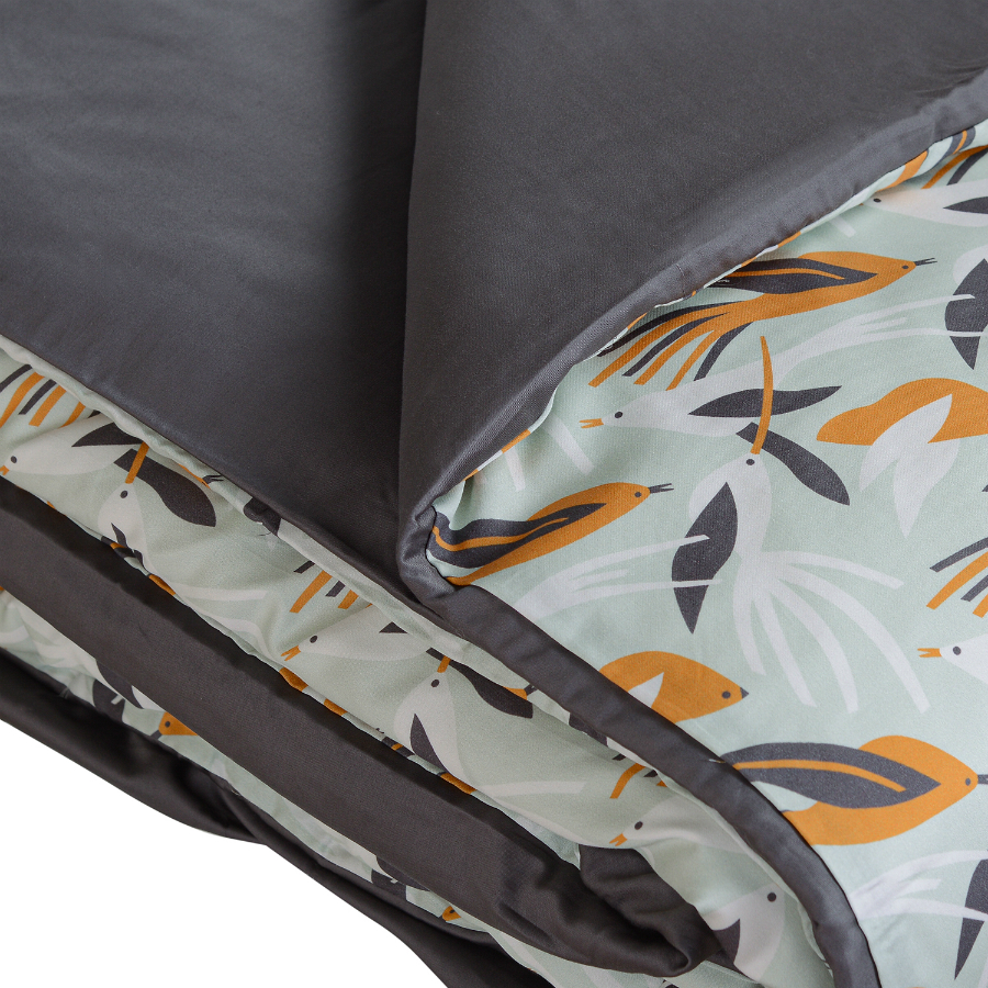 Комплект постельного белья из сатина темно-серого цвета в принтом Birds of Nile из коллекции Wild, 150х200 см