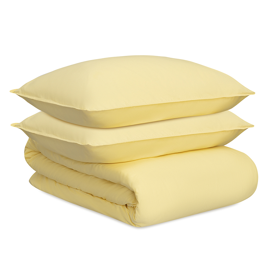 Комплект постельного белья из стираного перкаля светло-желтого цвета из коллекции Essential, 150х200 см, Tkano