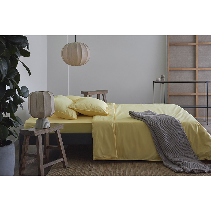 Комплект постельного белья из стираного перкаля светло-желтого цвета из коллекции Essential, 200х220 см, Tkano