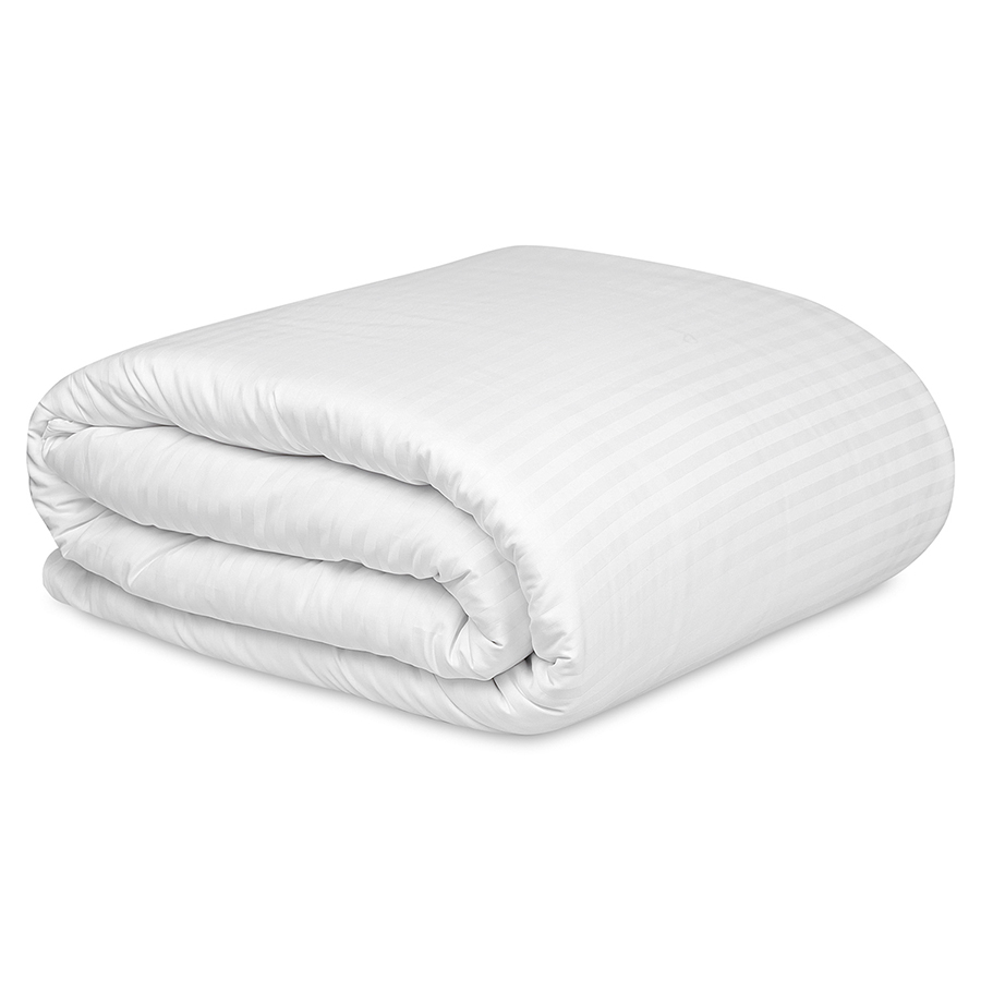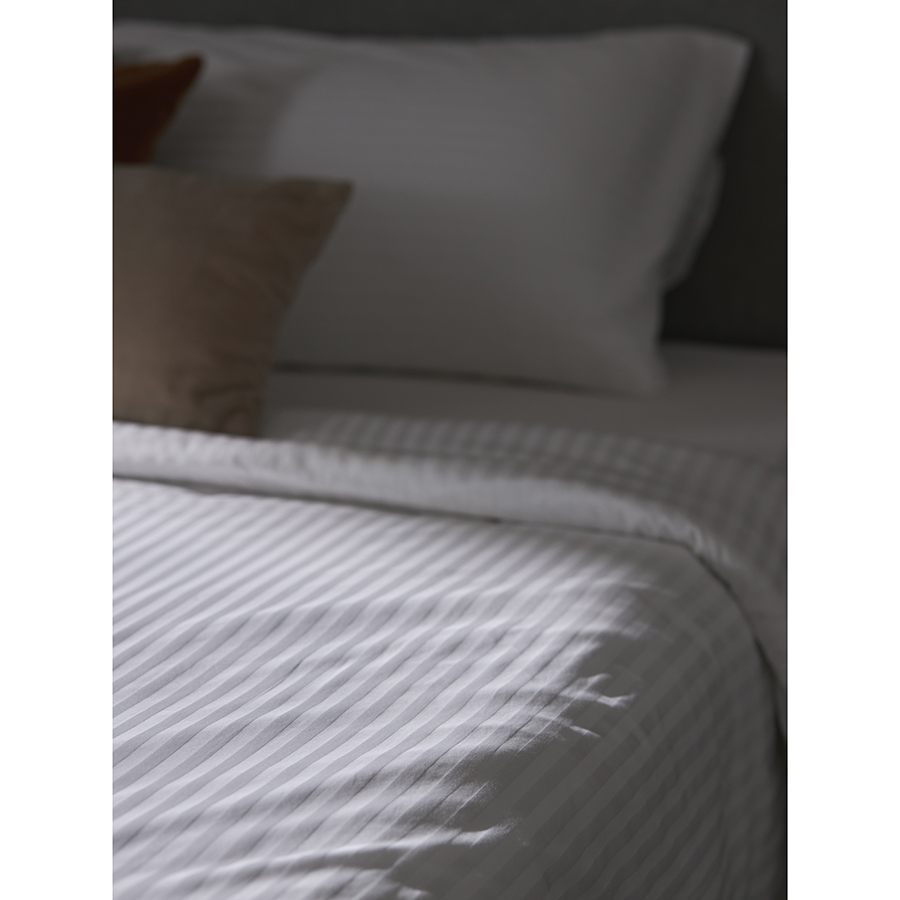 "Комплект из двух наволочек и пододеяльника из страйп-сатина из коллекции Essential – постельное белье премиального качества, которое сделает любую спальню более комфортной и изысканной.