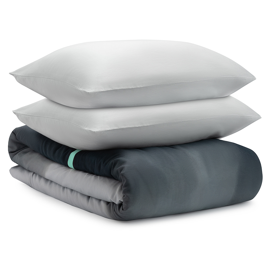 В комплекте: пододеяльник 150х200 см, застегивающийся на молнию, и две наволочки 50х70 см с системой закрытия клапан.
