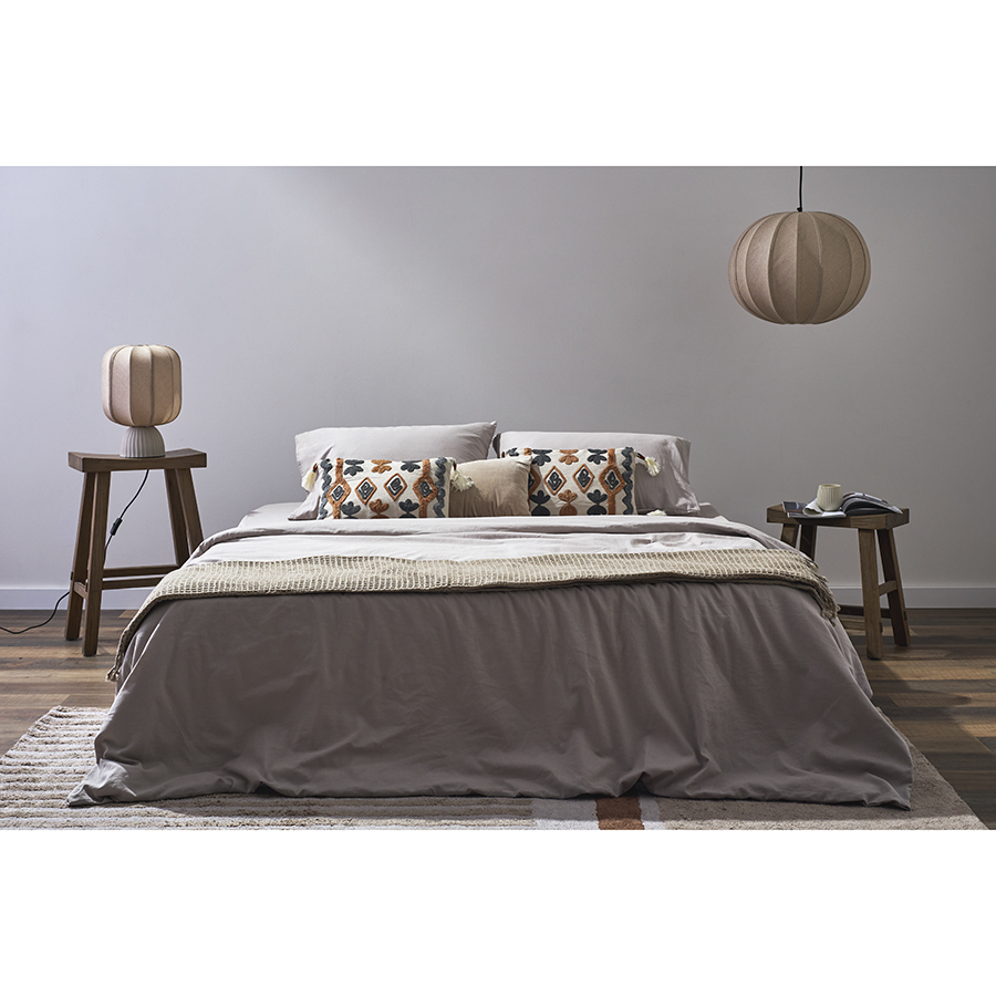 "Комплект из двух наволочек и пододеяльника серо-бежевого цвета из коллекции Essential – стильное постельное белье из натуральных материалов высочайшего качества, которое подарит ощущение комфорта во время сна и привнесет в интерьер спальни природную элегантность.