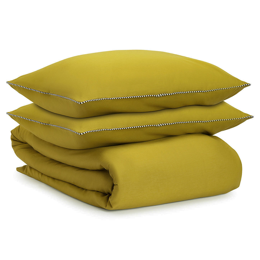 Комплект постельного белья оливкового цвета с контрастным кантом из коллекции Essential, 150х200 см