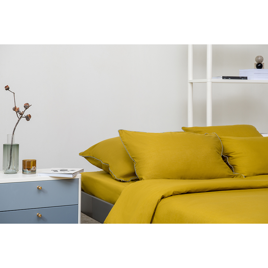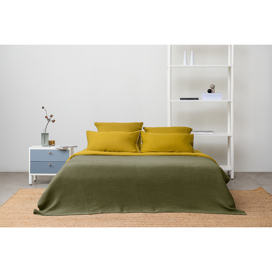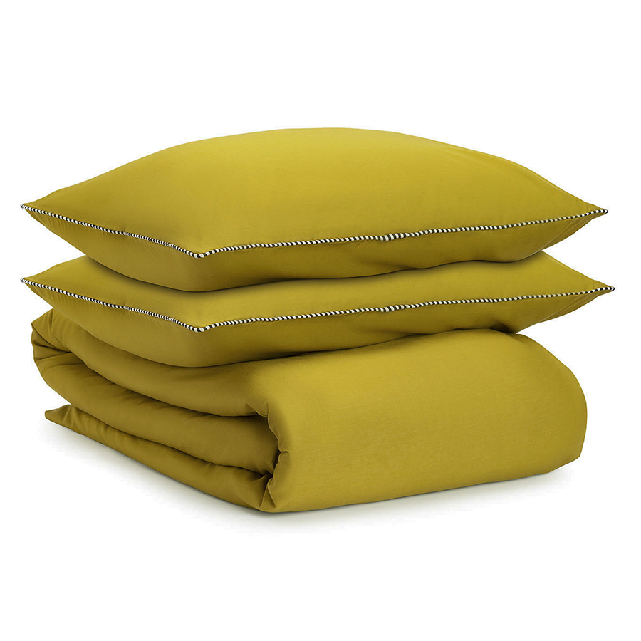 Комплект постельного белья оливкового цвета с контрастным кантом из коллекции Essential, 200х220 см