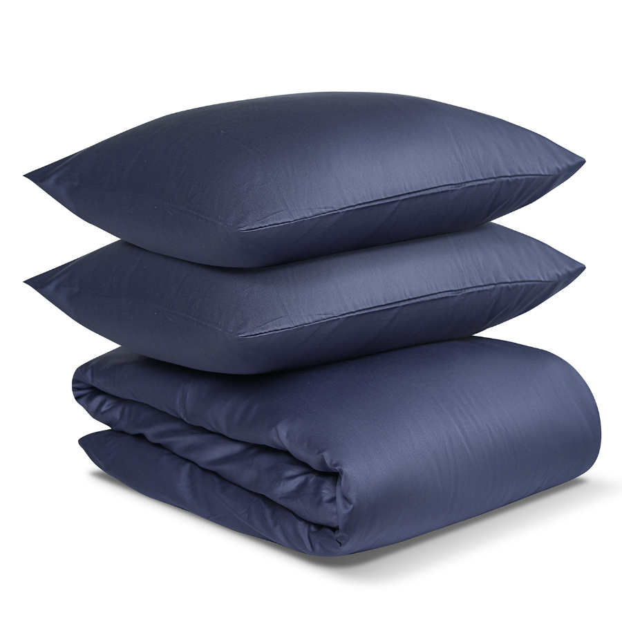 Комплект постельного белья полутораспальный из сатина темно-синего цвета из коллекции Essential