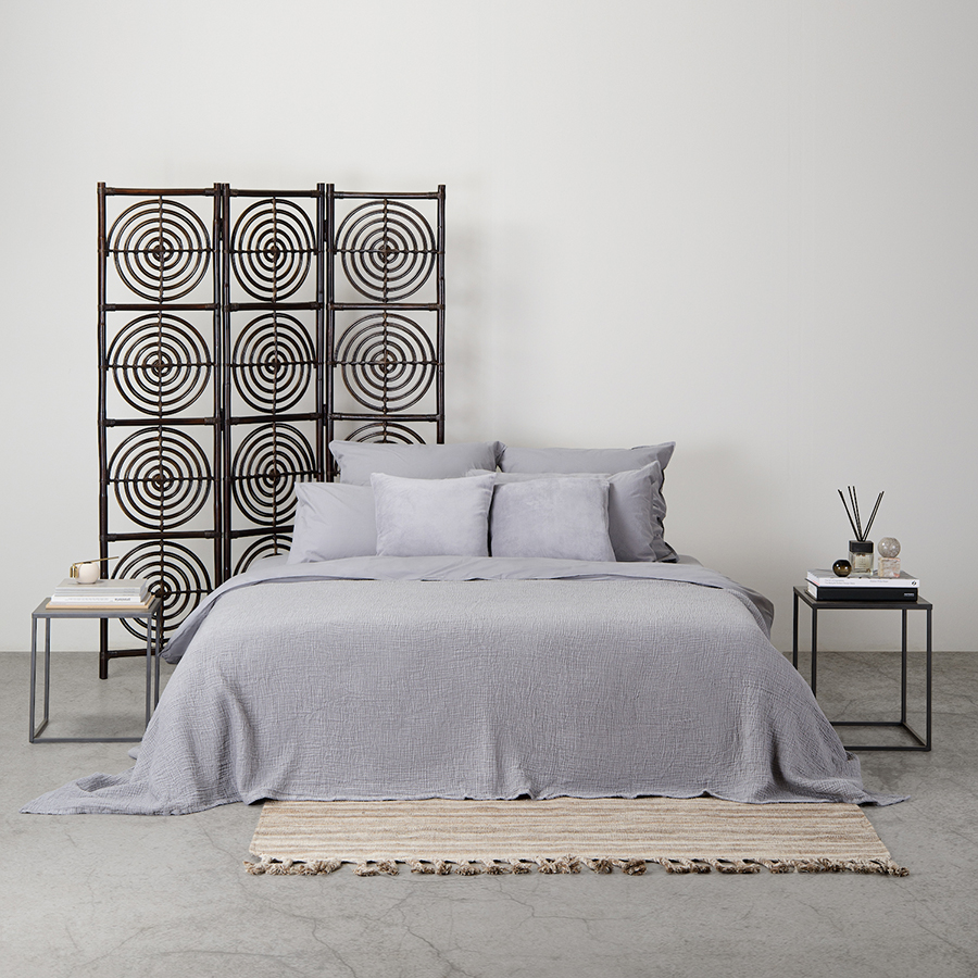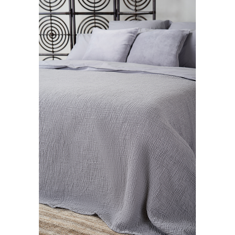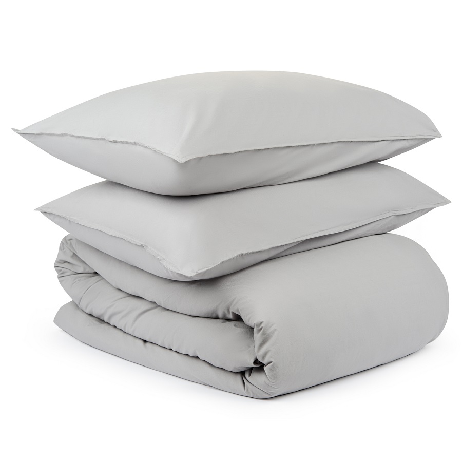 Комплект постельного белья полутораспальный серого цвета из органического стираного хлопка из коллекции Essential