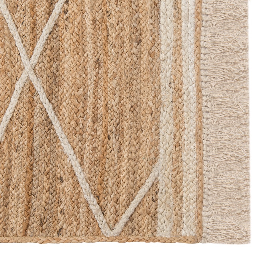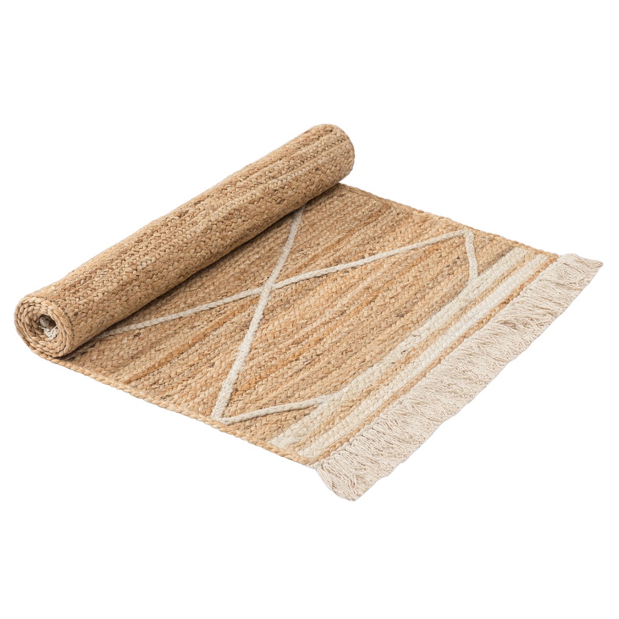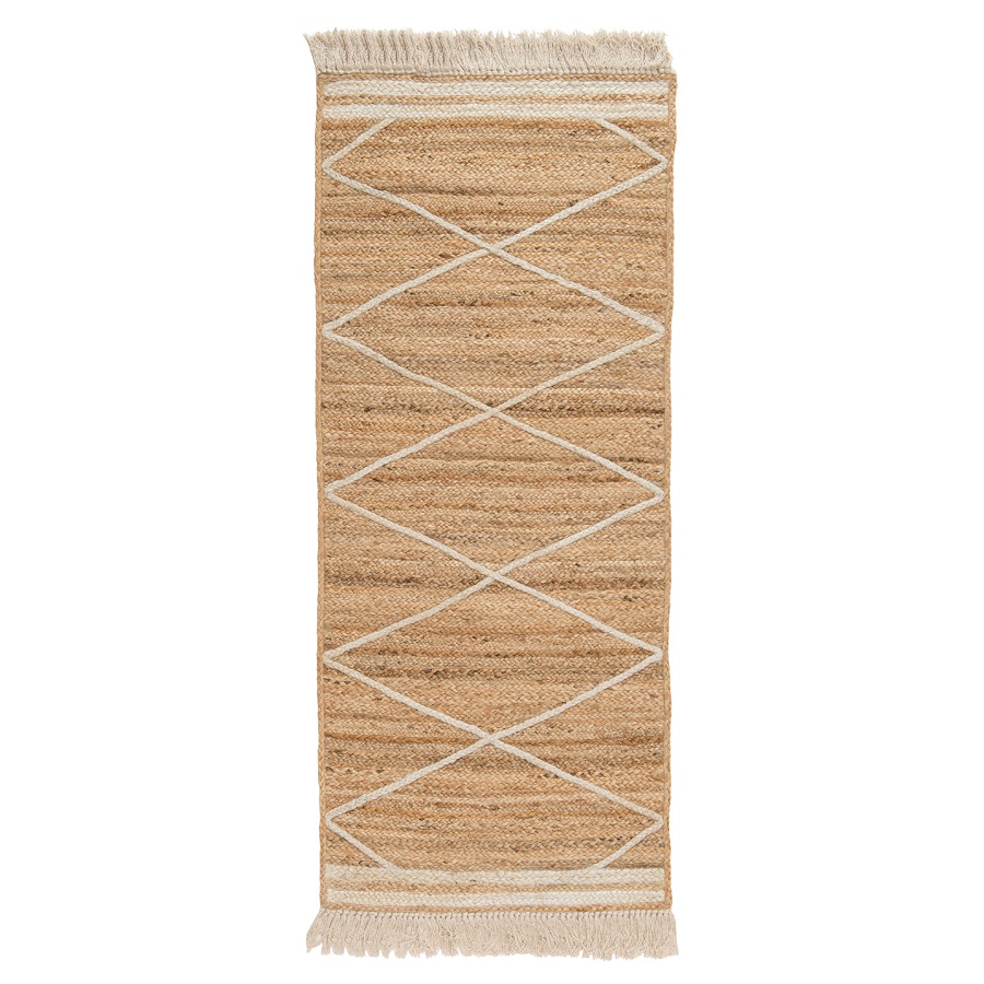 Ковер из джута бежевого цвета с геометрическим рисунком и с бахромой из коллекции Ethnic, 70х160 см