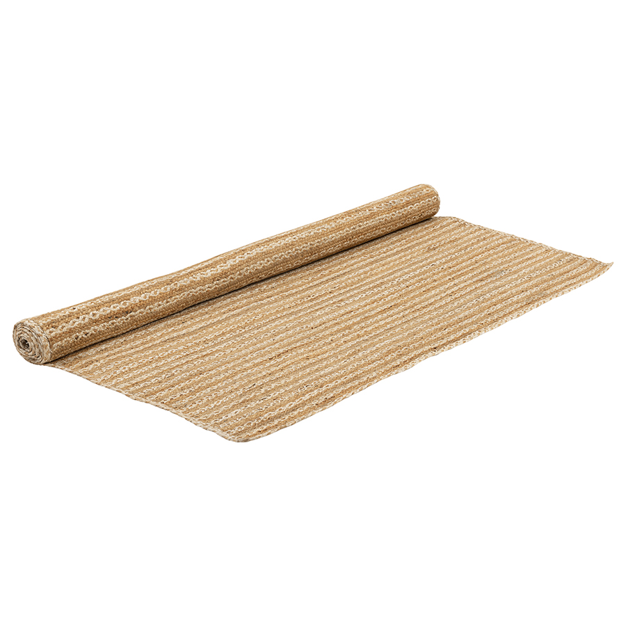 "Ковер из джута бежевого цвета в полоску из коллекции Ethnic – прекрасный способ создать в интерьере уютную, непринужденную атмосферу. Напольное покрытие из экологичного, износостойкого материала в естественной цветовой гамме идеально подойдет для гостиной, спальни, кухни или прихожей. Этнические нотки добавят оформлению помещения особый шарм.