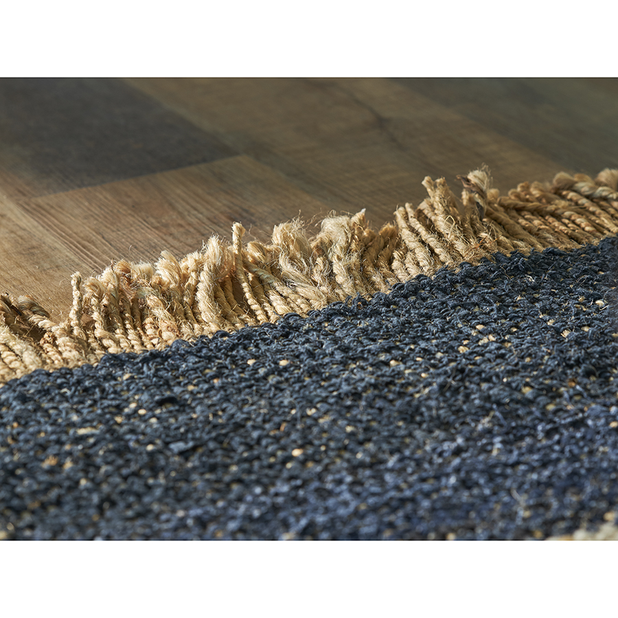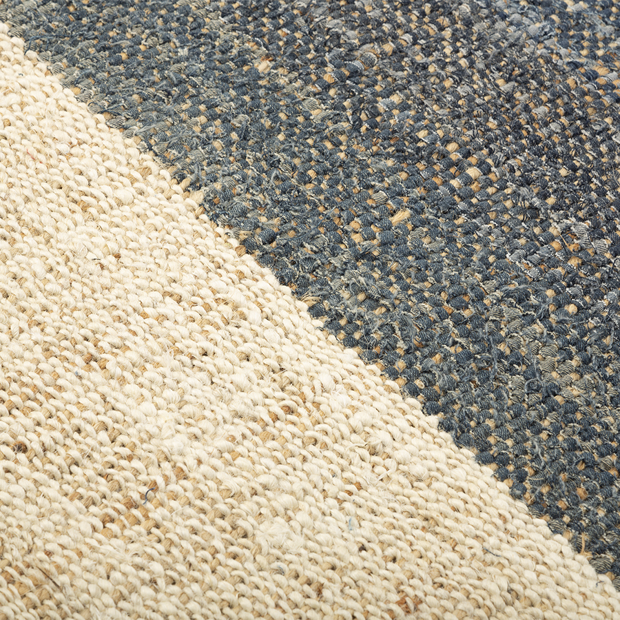 "Ковер Hyderabad из коллекции Ethnic отлично смотрится в современных интерьерах и эклектичных пространствах. Одним из главных достоинств дизайна является сочетание трех уникальных материалов. Джут делает это напольное покрытие практичным и долговечным, обеспечивая стойкость к износу и сохраняя его первоначальную форму на протяжении долгого времени. Деним добавляет в оформление модный акцент. Шерсть придает изделию мягкость, создавая приятное ощущение под ногами. Благодаря натуральной цветовой палитре ковер прекрасно гармонирует с мебелью и предметами интерьера любых оттенков.