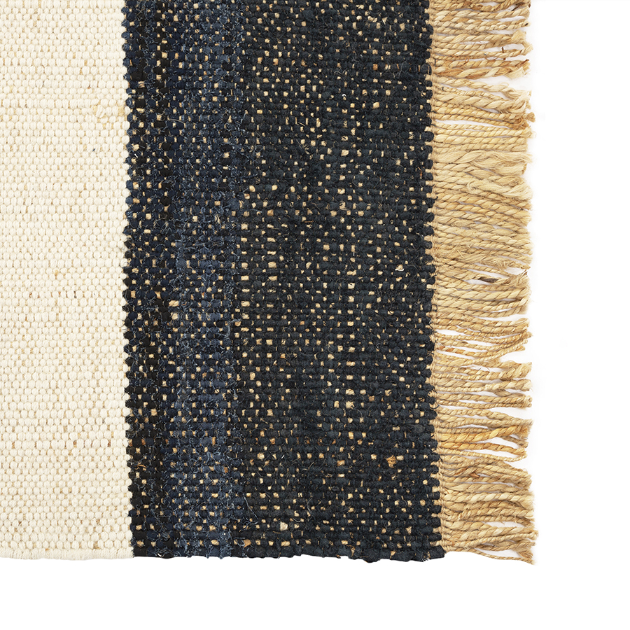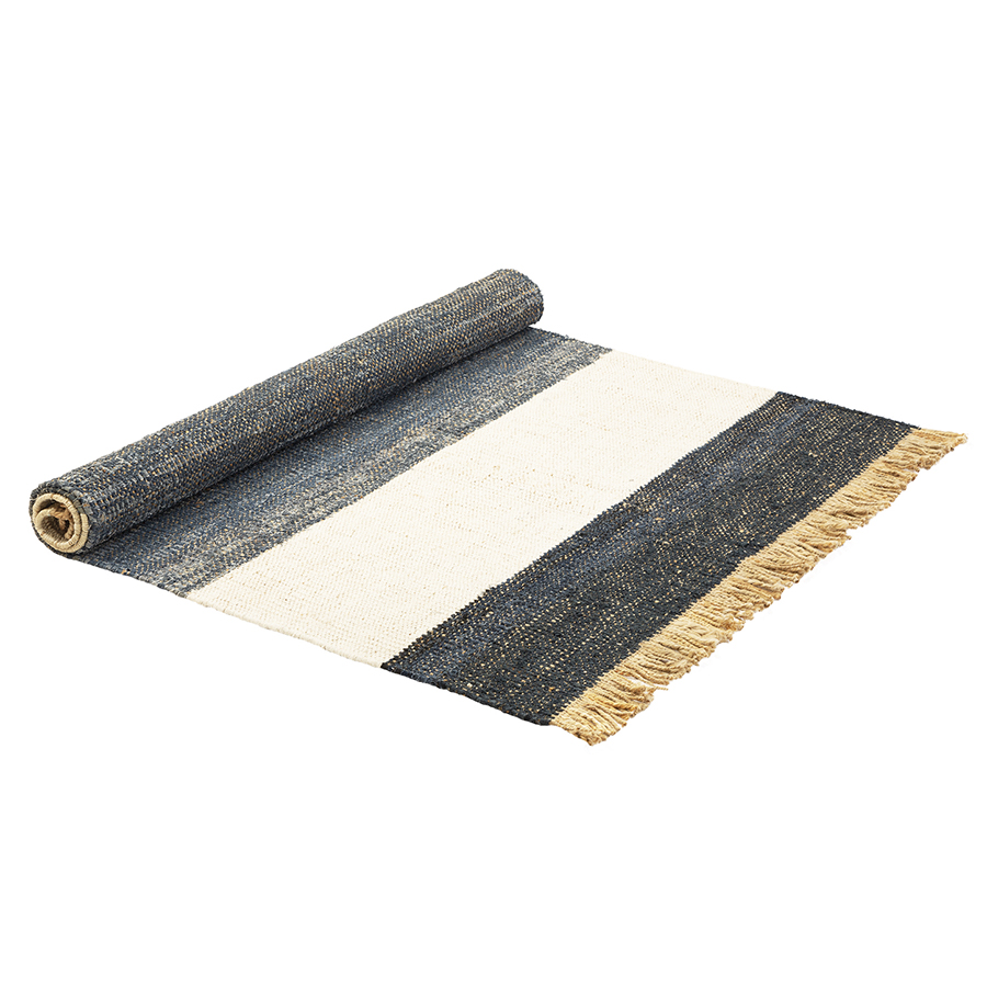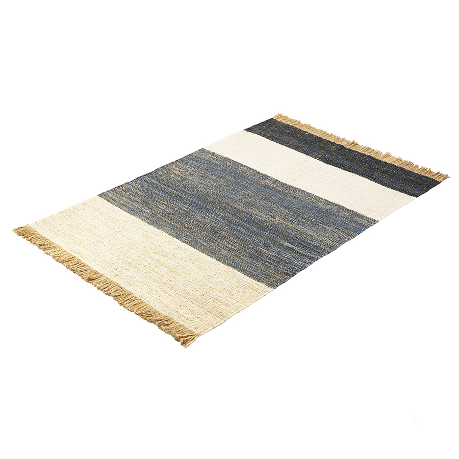 "Ковер Hyderabad из коллекции Ethnic отлично смотрится в современных интерьерах и эклектичных пространствах. Одним из главных достоинств дизайна является сочетание трех уникальных материалов. Джут делает это напольное покрытие практичным и долговечным, обеспечивая стойкость к износу и сохраняя его первоначальную форму на протяжении долгого времени. Деним добавляет в оформление модный акцент. Шерсть придает изделию мягкость, создавая приятное ощущение под ногами. Благодаря натуральной цветовой палитре ковер прекрасно гармонирует с мебелью и предметами интерьера любых оттенков.