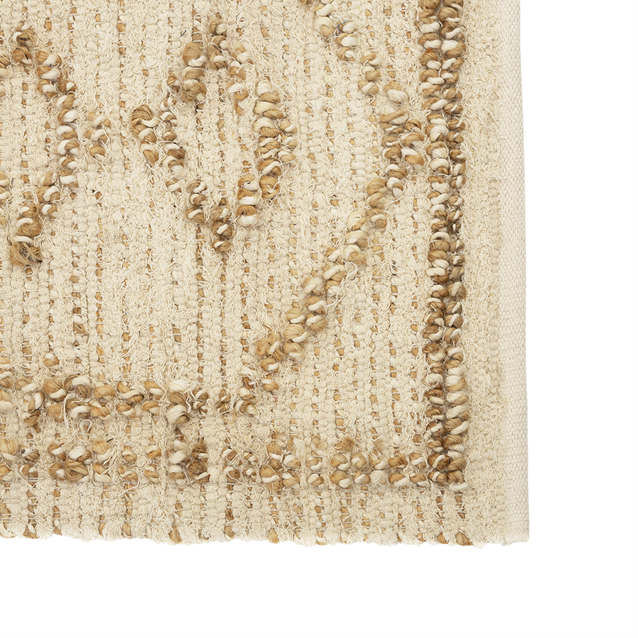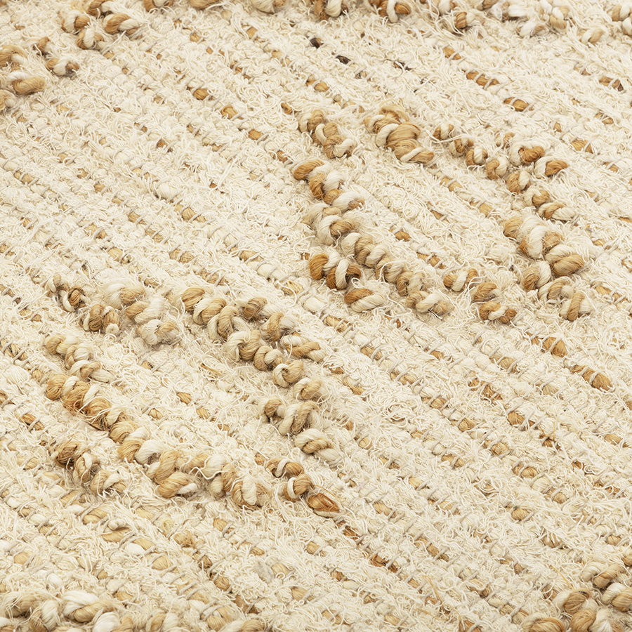 "Ковер Kolkata из коллекции Ethnic – прекрасный выбор для ценителей натуральных материалов и эклектичного дизайна. Использование такого простого акцента поможет сделать любое помещение более уютным, комфортным и уникальным. Сочетание джута и переработанного хлопка обеспечивает изделию высокую прочность, практичность и долговечность. Материалы являются экологичными, не требуют сложного ухода. Спокойная цветовая гамма и ненавязчивый узор позволяют легко интегрировать ковер в любое пространство и создавать гармоничные композиции с другими предметами интерьера.
