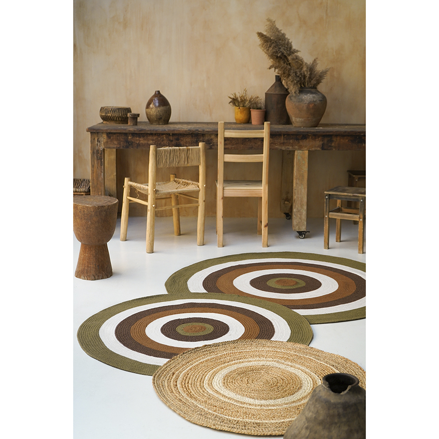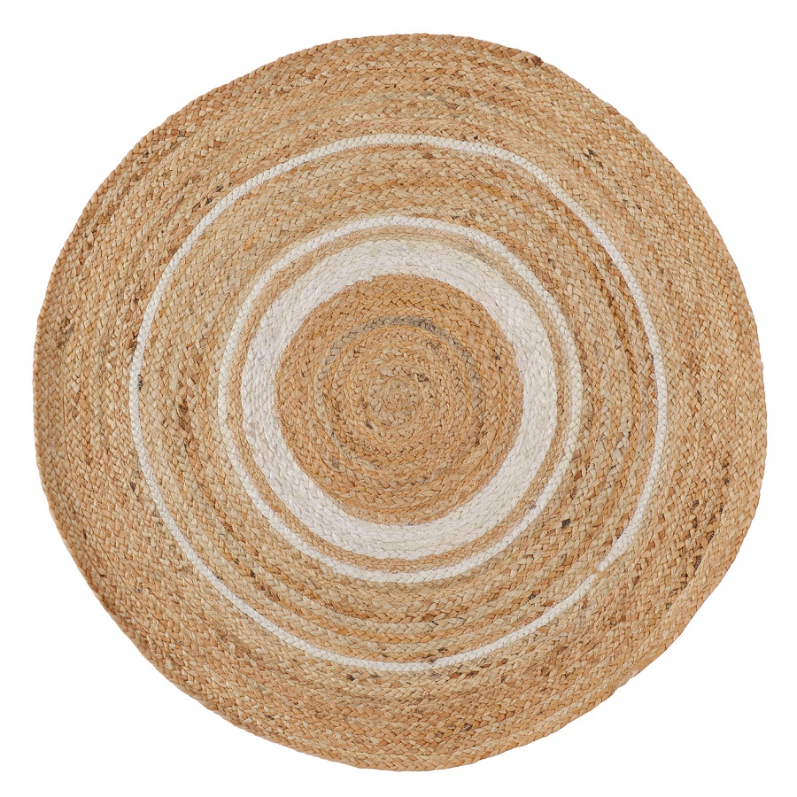 Ковер из джута круглый с вставками белого цвета из коллекции Ethnic, 90 см