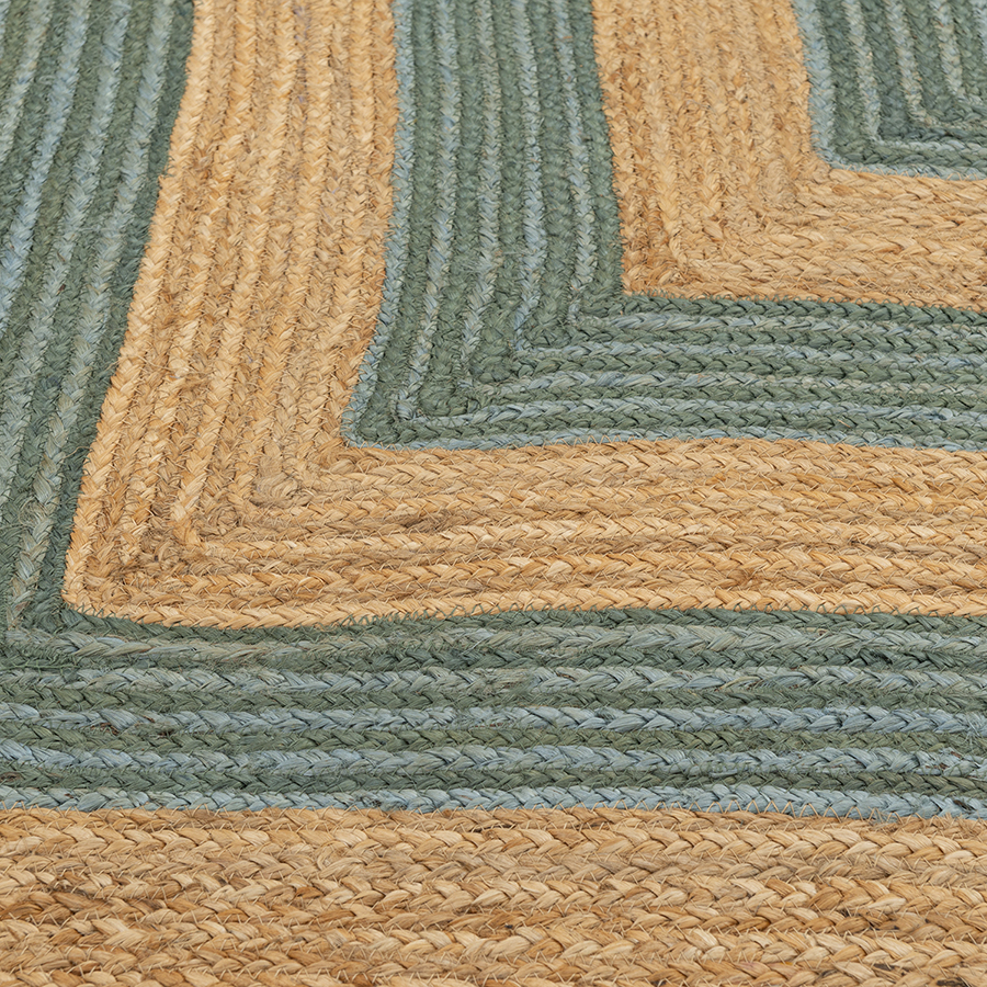 "Ковер из джута с вставками зеленого цвета из коллекции Ethnic привнесет этническую нотку в любой современный интерьер, сделав его более уютным и оригинальным. Напольное покрытие в естественной цветовой гамме с акцентным узором в виде «паркетной елочки» станет настоящим украшением гостиной, спальни, кухни или прихожей. Материал изготовления отличается экологичностью и прекрасными износостойкими характеристиками.