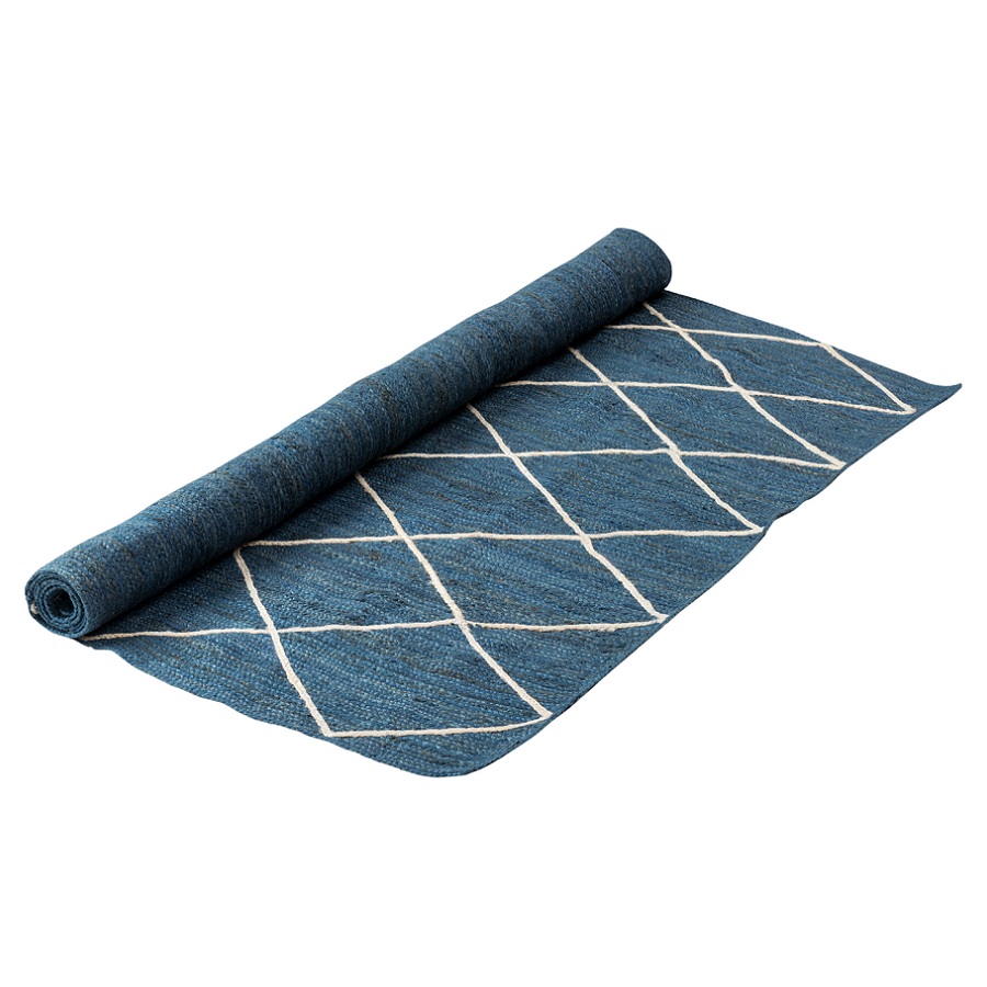 "Ковер из джута темно-синего цвета с геометрическим рисунком из коллекции Ethnic дополнит любой современный интерьер. Изделие из плотного натурального джута будет уместно в гостиной, спальне, кухне или прихожей. Материал устойчив к истиранию и прослужит многие годы. Ковер представлен в нескольких размерах.