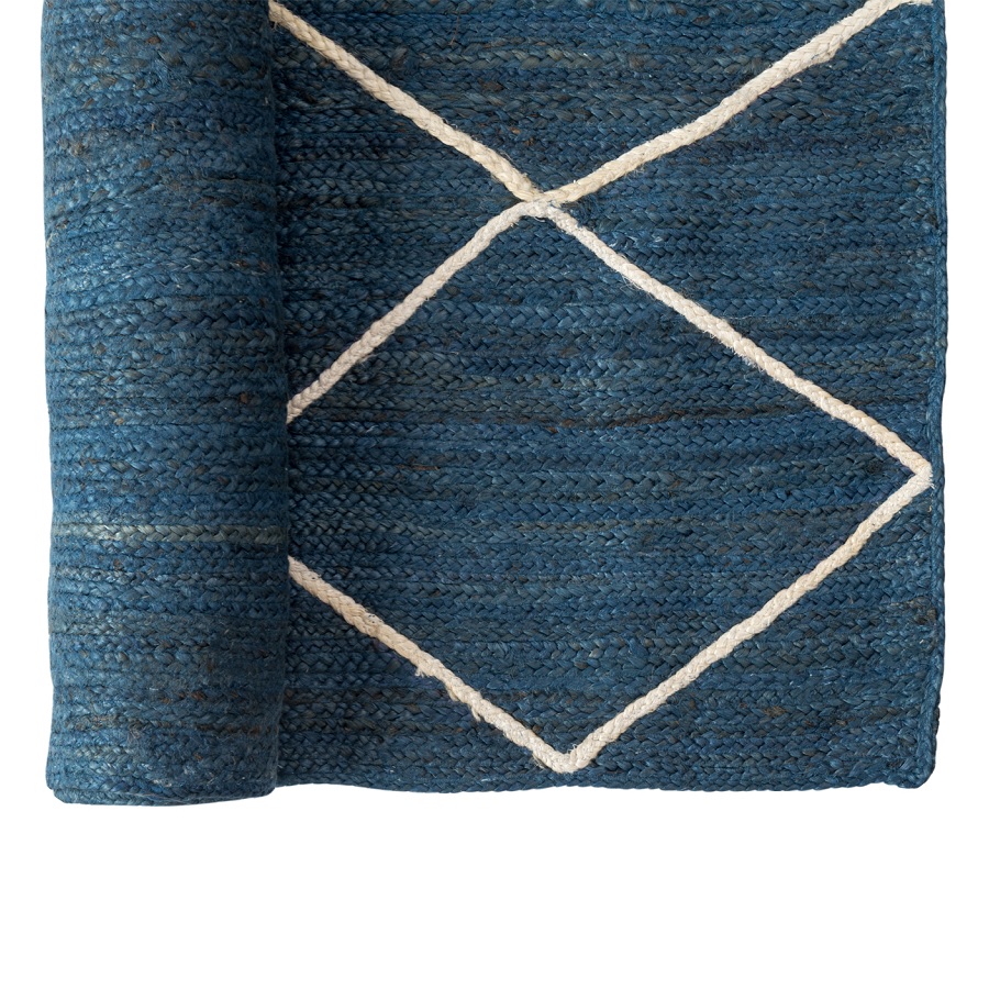 Ковер из джута темно-синего цвета с геометрическим рисунком из коллекции Ethnic, 200x300 см