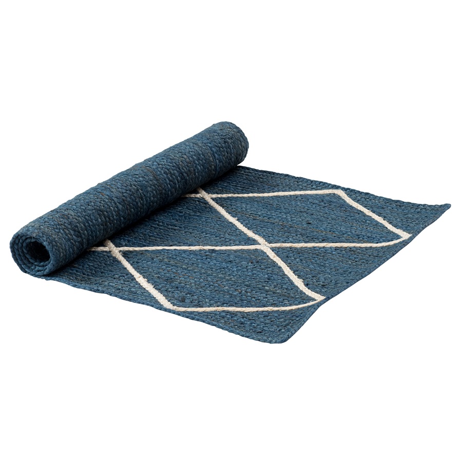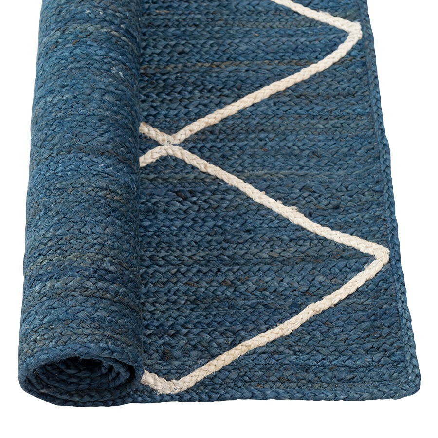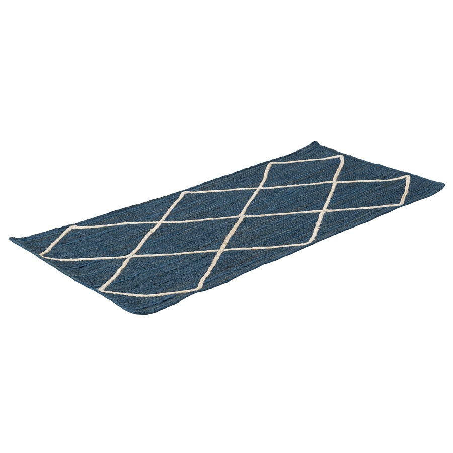 Ковер из джута темно-синего цвета с геометрическим рисунком из коллекции Ethnic, 70х160 см