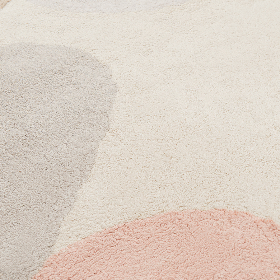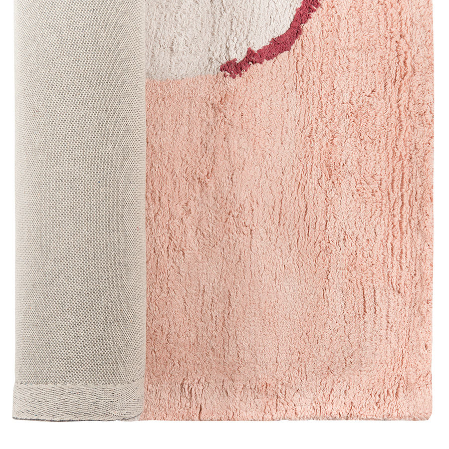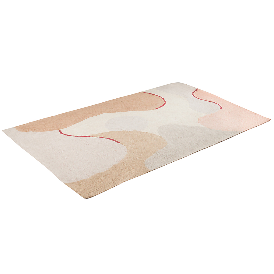 "Ковер из хлопка бежевого цвета с авторским принтом из коллекции Freak Fruit станет необычным акцентом в интерьере. Абстрактный принт не имеет повторяющегося раппорта и представляет собой единую законченную картину.