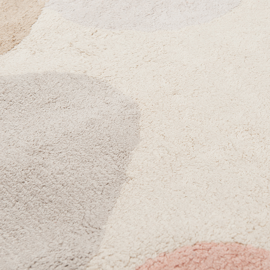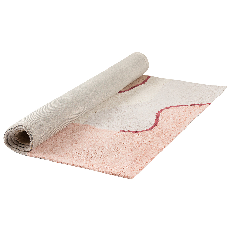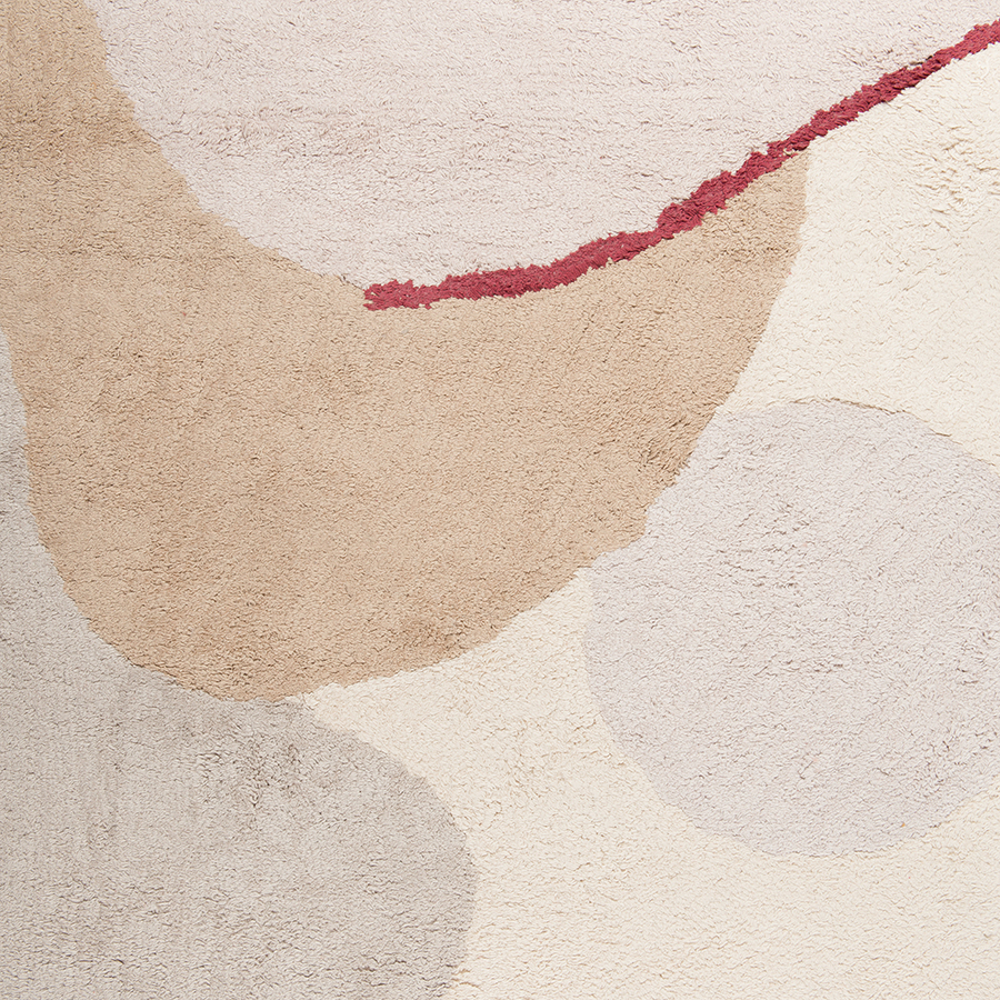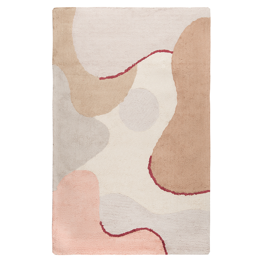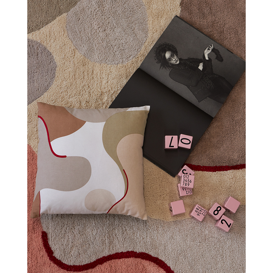 "Ковер из хлопка бежевого цвета с авторским принтом из коллекции Freak Fruit станет необычным акцентом в интерьере. Абстрактный принт не имеет повторяющегося раппорта и представляет собой единую законченную картину.
