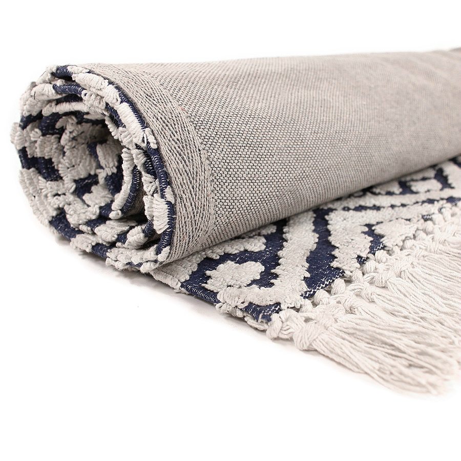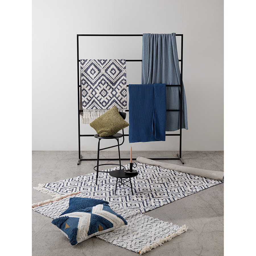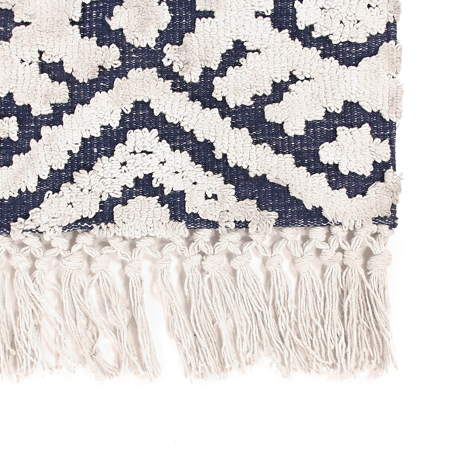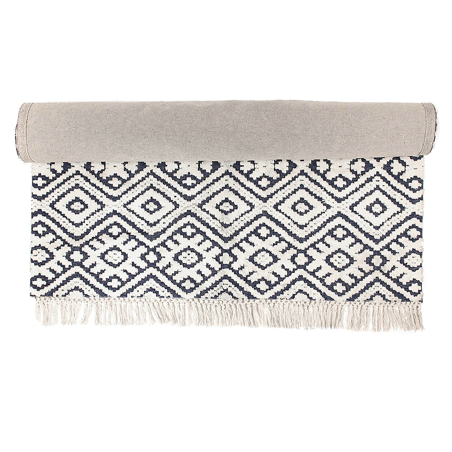 "Ковер из коллекции Ethnic с контрастным геометрическим принтом Jaipur создаст необычный акцент в помещении. Модель органично впишется в яркий фьюжн или разбавит строгий минимализм. Ковер можно повесить на стену в качестве арт-объекта, поместить на пол возле дивана или кровати. Изделие выполнено из прочного высококачественного хлопка.