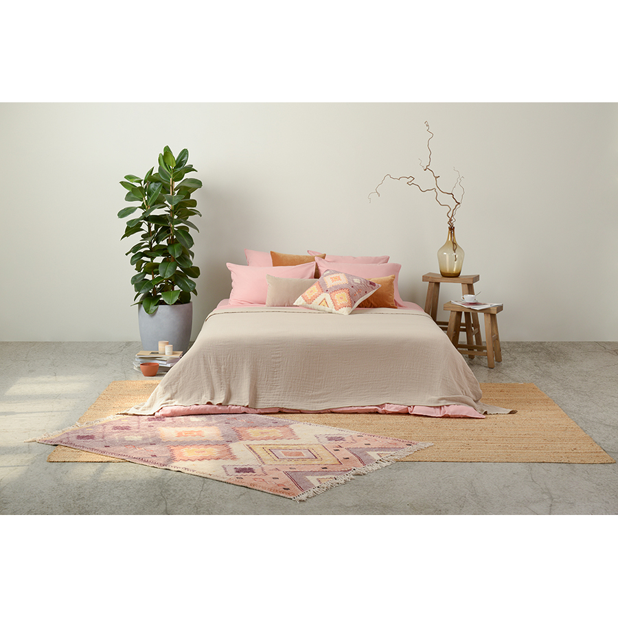 "Ковер из хлопка с этническим орнаментом цвета лаванды из коллекции Ethnic украшен бахромой. Он дополнит любой современный интерьер, добавит уюта и станет акцентом в гостиной, спальне или детской. Практичное изделие из хлопка можно постелить на пол или повесить на стену в качестве арт-объекта, а также поддержать в интерьере декоративными подушками с тем же орнаментом. Ковер представлен в двух размерах.