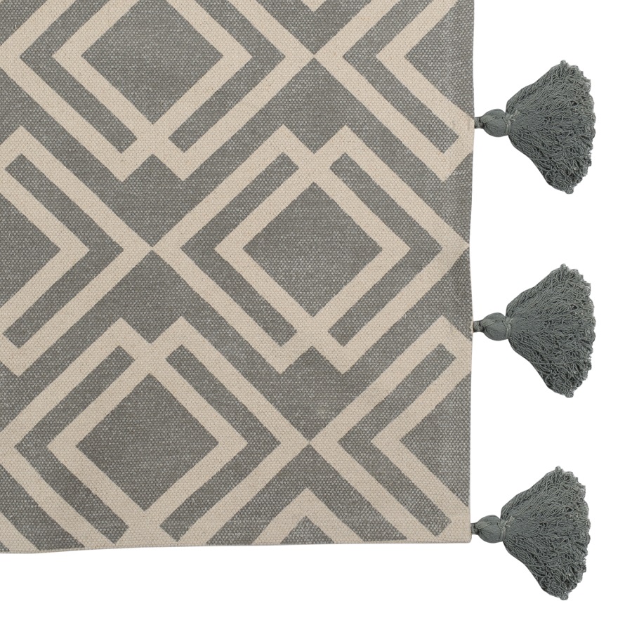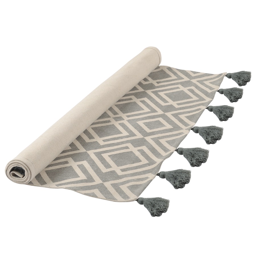 "Ковер из хлопка с этническим узором Ромбы и кисточками из коллекции Ethnic универсальной расцветки впишется практически в любой интерьер и станет необычным акцентом. Оригинальное изделие, выполненное из натуральных материалов, будет уместно в гостиной или в спальне.