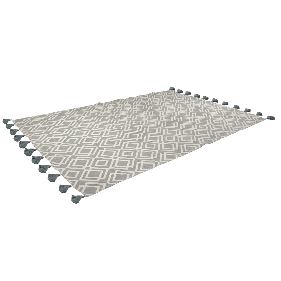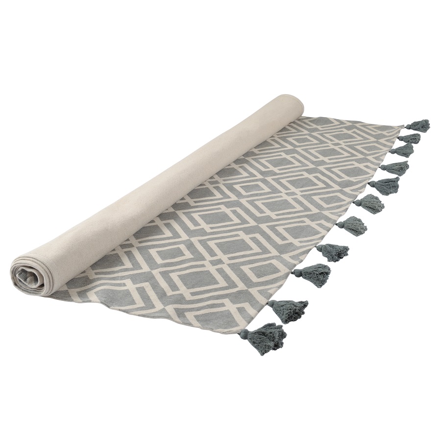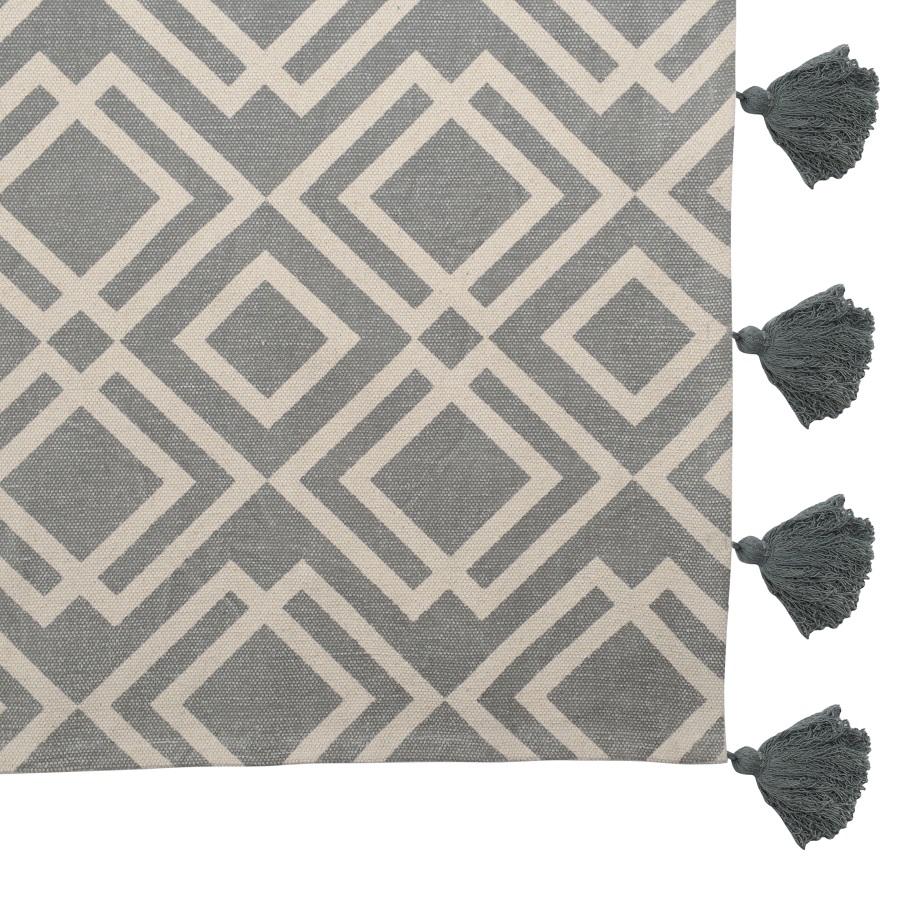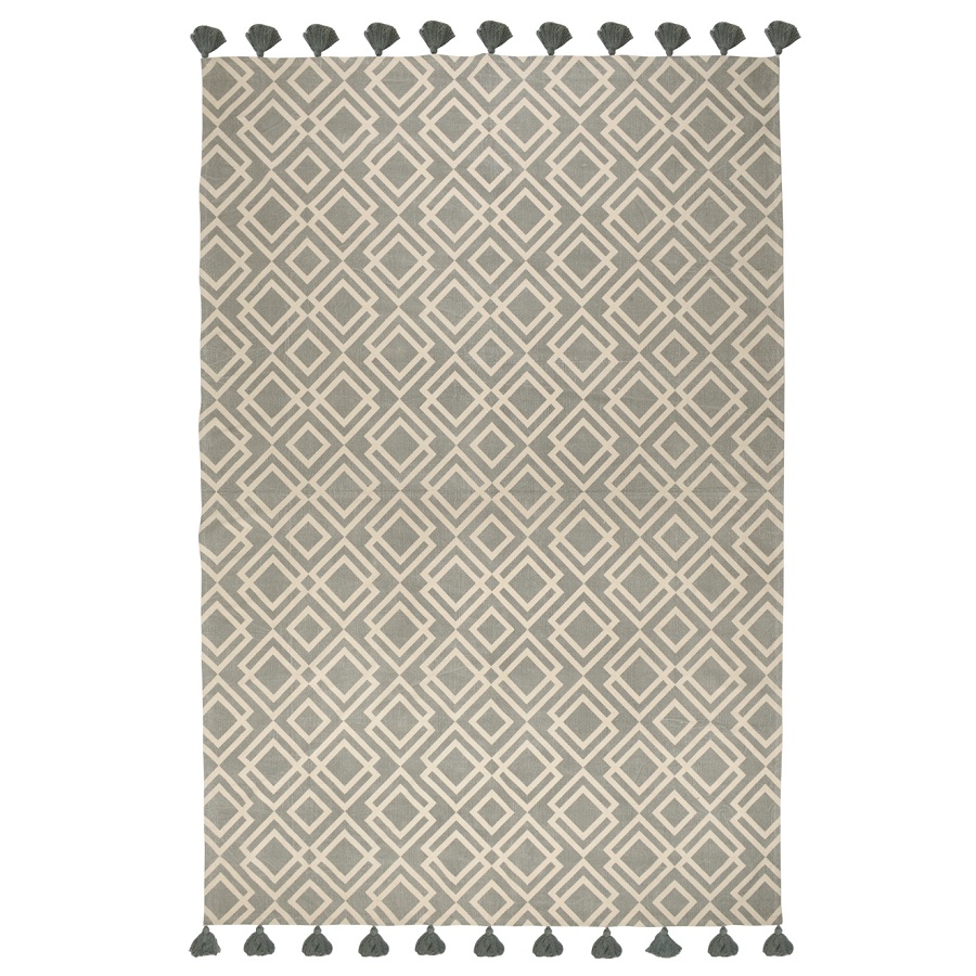 "Ковер из хлопка с этническим узором Ромбы и кисточками из коллекции Ethnic универсальной расцветки впишется практически в любой интерьер и станет необычным акцентом. Оригинальное изделие, выполненное из натуральных материалов, будет уместно в гостиной или в спальне.
