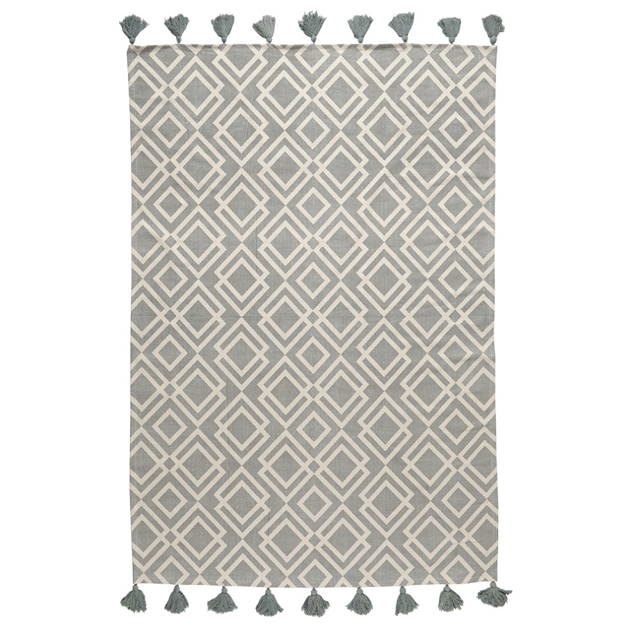 "Ковер из хлопка с этническим узором Ромбы и кисточками из коллекции Ethnic универсальной расцветки впишется практически в любой интерьер и станет необычным акцентом. Оригинальное изделие, выполненное из натуральных материалов, будет уместно в гостиной или в спальне.