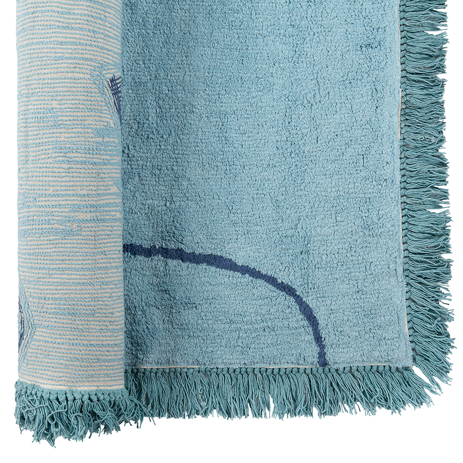 "Ковер из хлопка с геометрическим принтом, бахромой и кисточками из коллекции Ethnic органично впишется в любой интерьер: от минимализма и фьюжн, до скандинавского и бохо. Оригинальное изделие из высококачественного и прочного хлопка станет ярким акцентом в детской и другой комнате. На ковре органично сочетаются различные фактуры и объемный декор. В интерьере можно дополнить подушками в том же стиле. Ковер представлен в нескольких размерах.