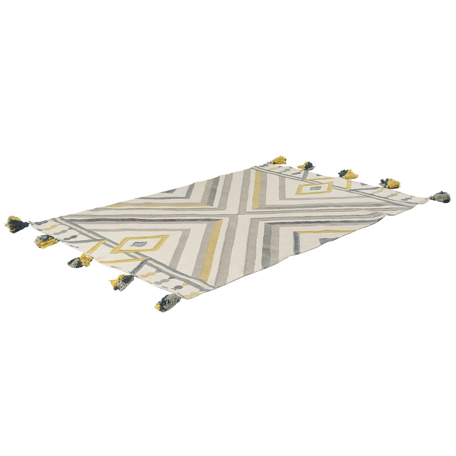 "Ковер из хлопка с контрастным узором и кисточками из коллекции Ethnic органично впишется в любой интерьер: от минимализма и фьюжн, до скандинавского и бохо. Изделие с этническими мотивами выполнено из высококачественного и прочного хлопка. Станет ярким акцентом в детской и любой другой комнате. Ковер с объемными кисточками представлен в нескольких размерах.