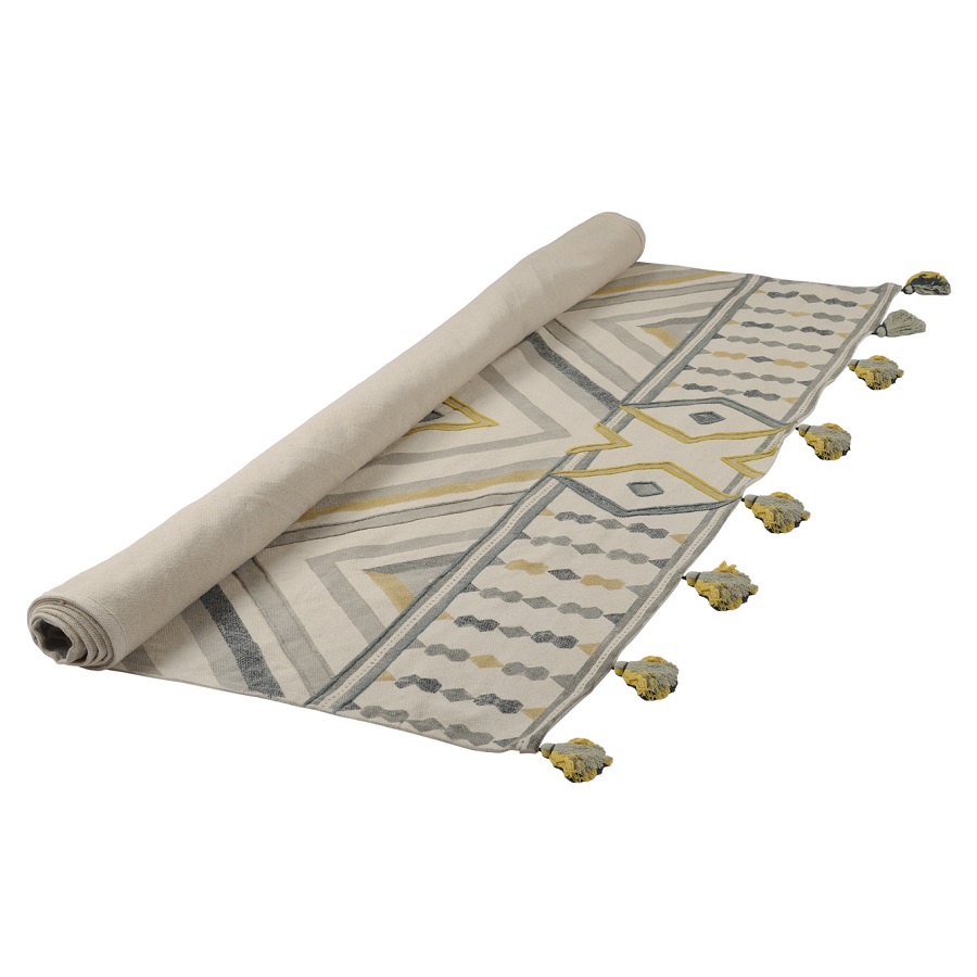"Ковер из хлопка с контрастным узором и кисточками из коллекции Ethnic органично впишется в любой интерьер: от минимализма и фьюжн, до скандинавского и бохо. Изделие с этническими мотивами выполнено из высококачественного и прочного хлопка. Станет ярким акцентом в детской и любой другой комнате. Ковер с объемными кисточками представлен в нескольких размерах.