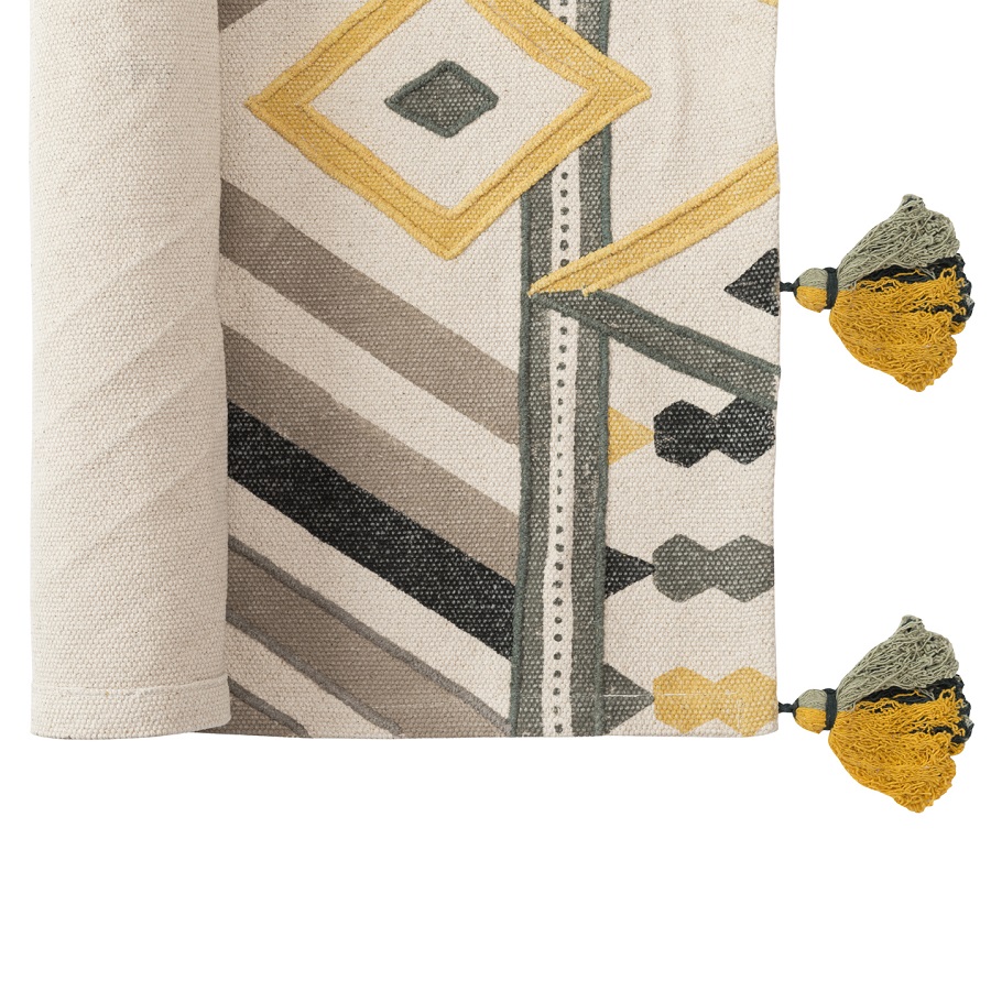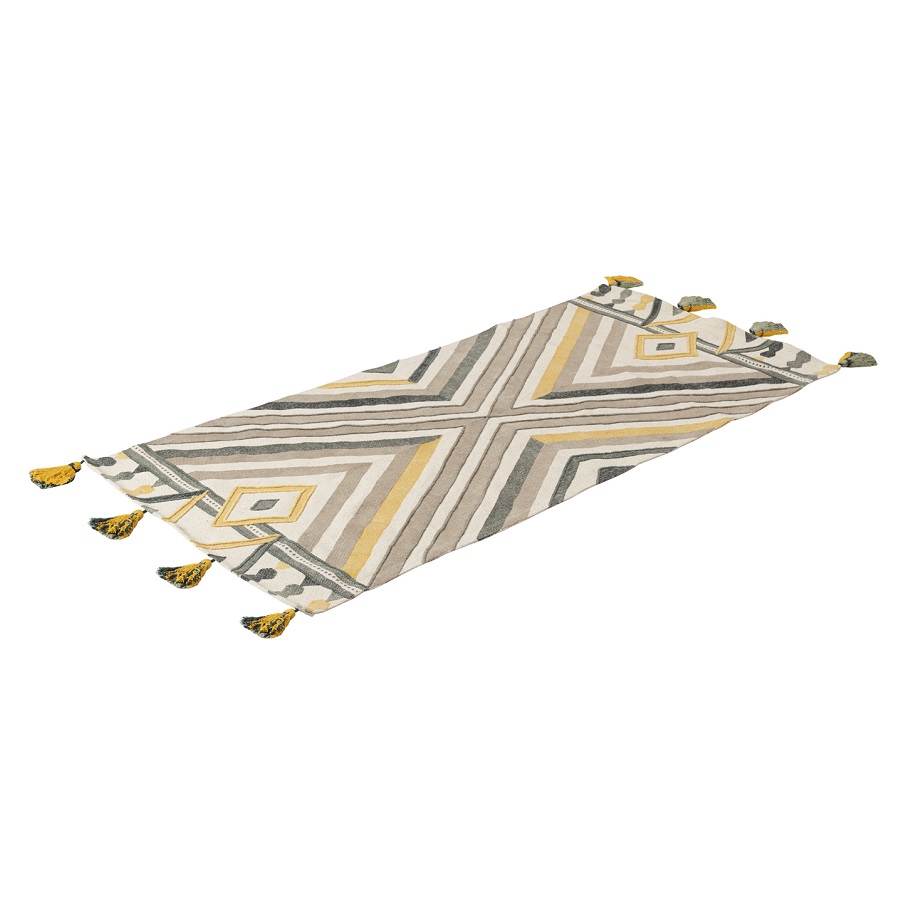 Ковер из хлопка с контрастным узором и кисточками из коллекции Ethnic, 70х160 см