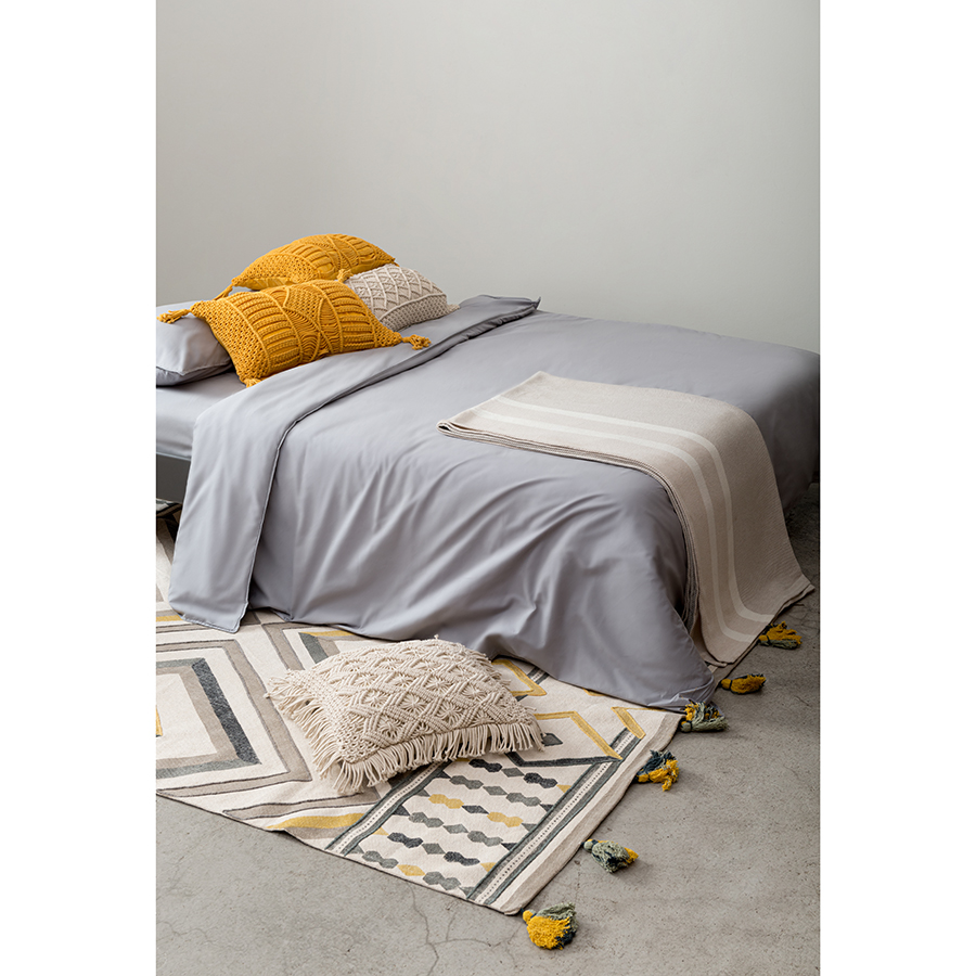 "Ковер из хлопка с контрастным узором и кисточками из коллекции Ethnic органично впишется в любой интерьер: от минимализма и фьюжн, до скандинавского и бохо. Изделие с этническими мотивами выполнено из высококачественного и прочного хлопка. Станет ярким акцентом в детской и любой другой комнате. Ковер с объемными кисточками представлен в нескольких размерах.