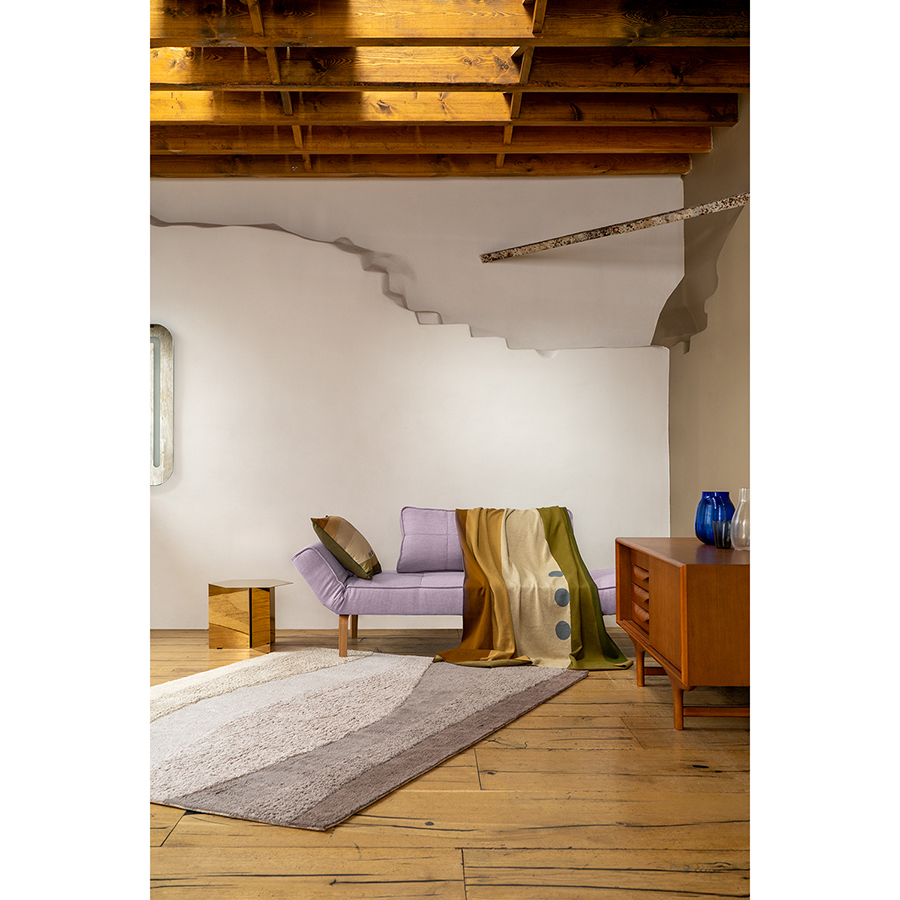 Чтобы придать интерьеру завершенный вид, к ковру рекомендуется добавить декоративные подушки и текстиль из одноименной коллекции.