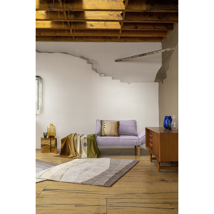 Чтобы придать интерьеру завершенный вид, к ковру рекомендуется добавить декоративные подушки и текстиль из одноименной коллекции.