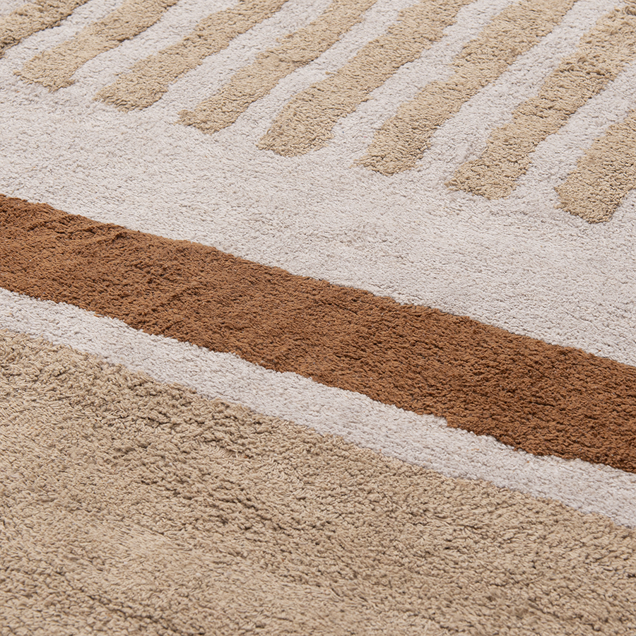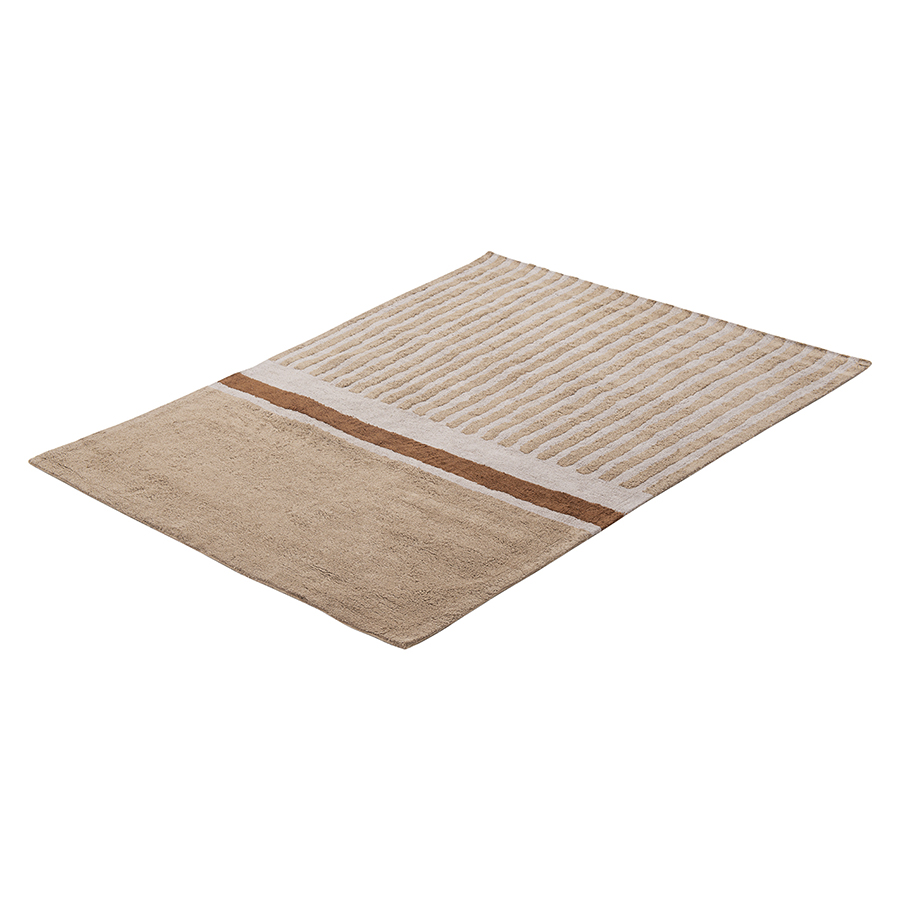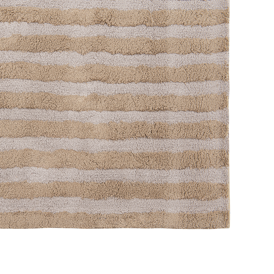 "Ковер ворсовый из хлопка с рисунком Tulip garden бежевого цвета из коллекции Terra сделает интерьер гостиной, спальни, прихожей или рабочего кабинета более уютным и оригинальным. Благодаря тафтинговой технологии производства покрытие отличается высокими показателями износостойкости и красивым рельефным узором. В основе принта – ровные линии полей тюльпанов в Голландии, видимые с высоты птичьего полета. Ворс из 100%, хлопка дарит приятные тактильные ощущения для босых ног. Натуральный материал и природная цветовая палитра – идеальное решение для тех, кто с теплом и трепетом относится к своему жилому пространству.
