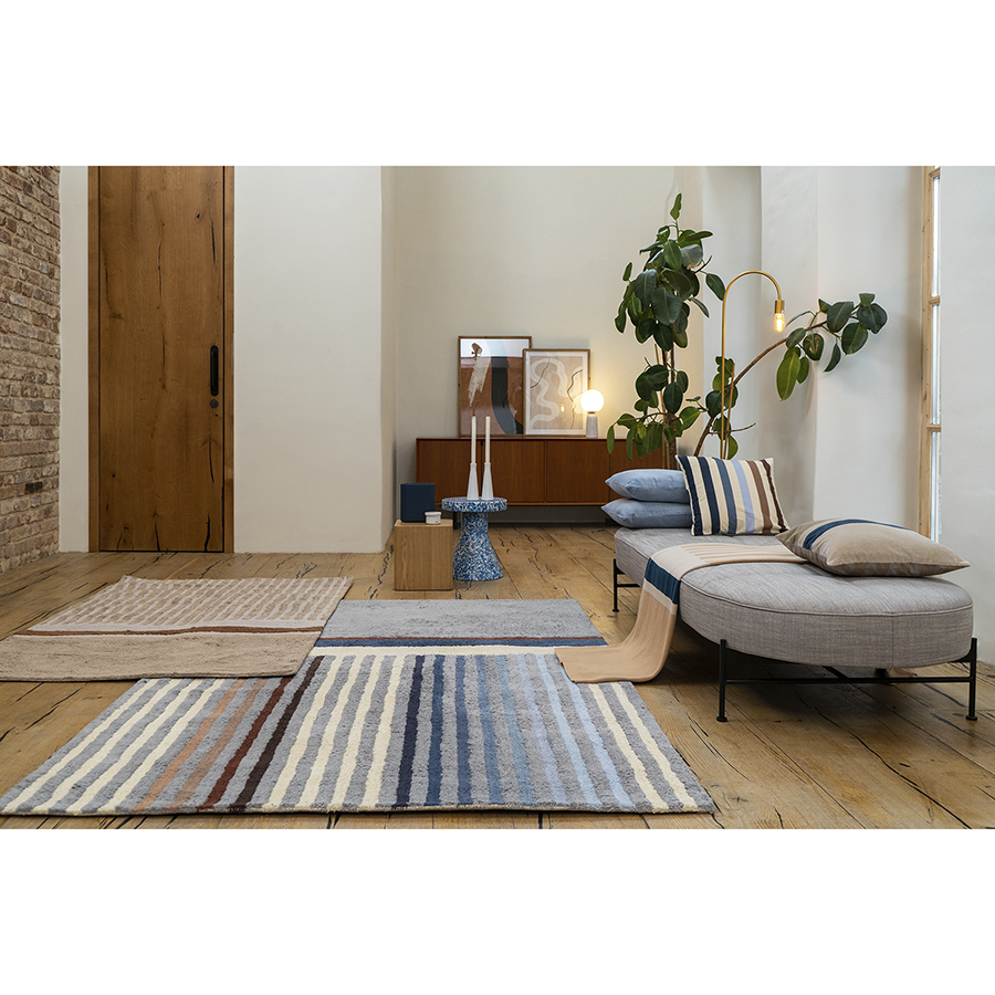 Чтобы придать интерьеру завершенный вид, к ковру рекомендуется добавить декоративные подушки и текстиль из одноименной коллекции.