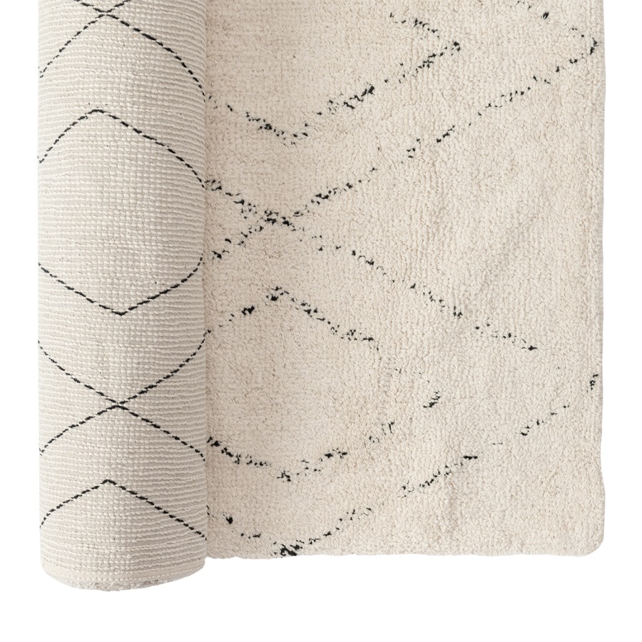 "Ковер из хлопка в берберском стиле из коллекции Ethnic впишется в любой современный интерьер. Ассиметричный принт легко сочетать с другим декоративным текстилем. Изделие подойдет для гостиной, спальни, рабочего кабинета или детской комнаты. Ковер представлен в нескольких размерах.