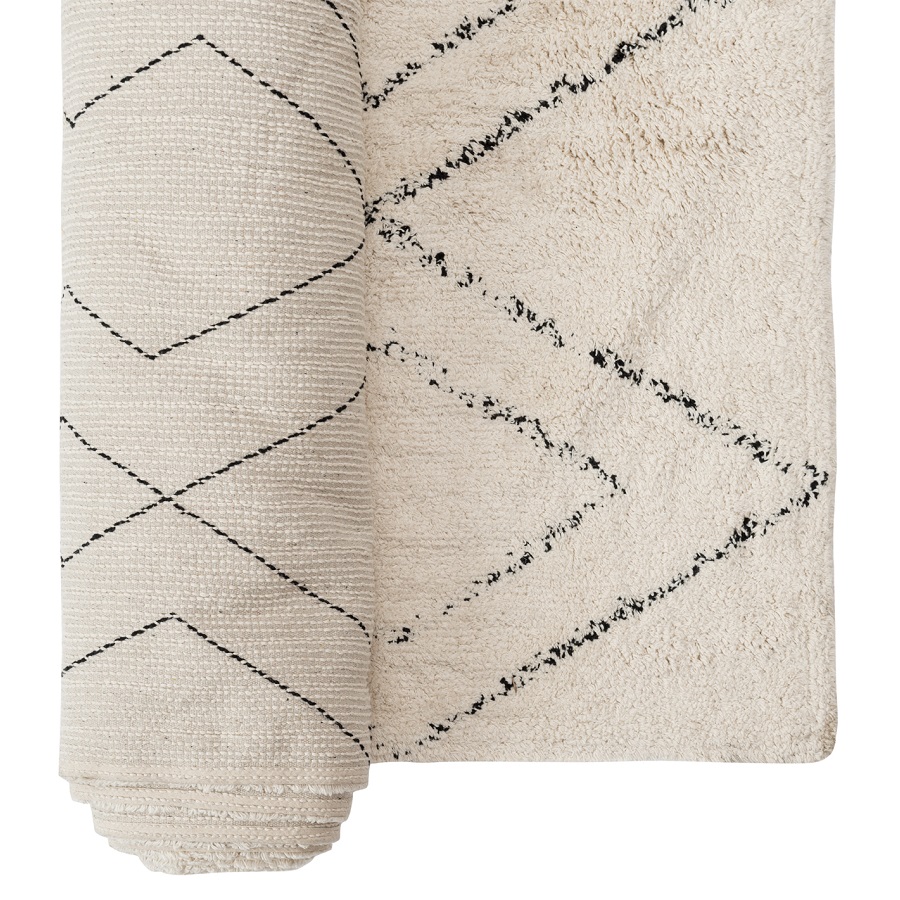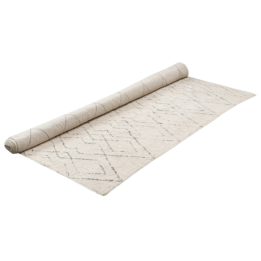 "Ковер из хлопка в берберском стиле из коллекции Ethnic впишется в любой современный интерьер. Ассиметричный принт легко сочетать с другим декоративным текстилем. Изделие подойдет для гостиной, спальни, рабочего кабинета или детской комнаты. Ковер представлен в нескольких размерах.