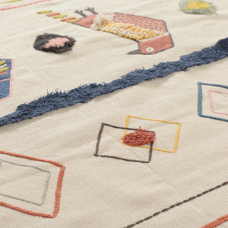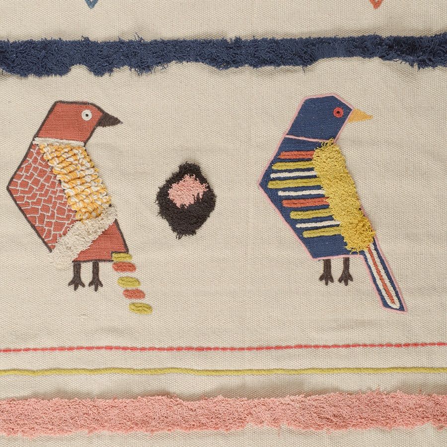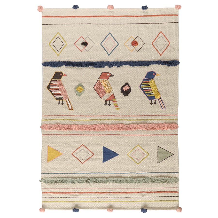 "Ковер из хлопка в этническом стиле с орнаментом Птицы из коллекции Ethnic органично впишется в любой интерьер: от минимализма и фьюжн, до скандинавского и бохо. Оригинальное изделие из высококачественного и прочного хлопка станет ярким акцентом в детской и другой комнате. Ковер притягивает взгляды уникальным дизайном и сочетанием различных фактур. Его можно повесить на стену в качестве арт-объекта или дополнить в интерьере подушками в том же стиле. , ,
