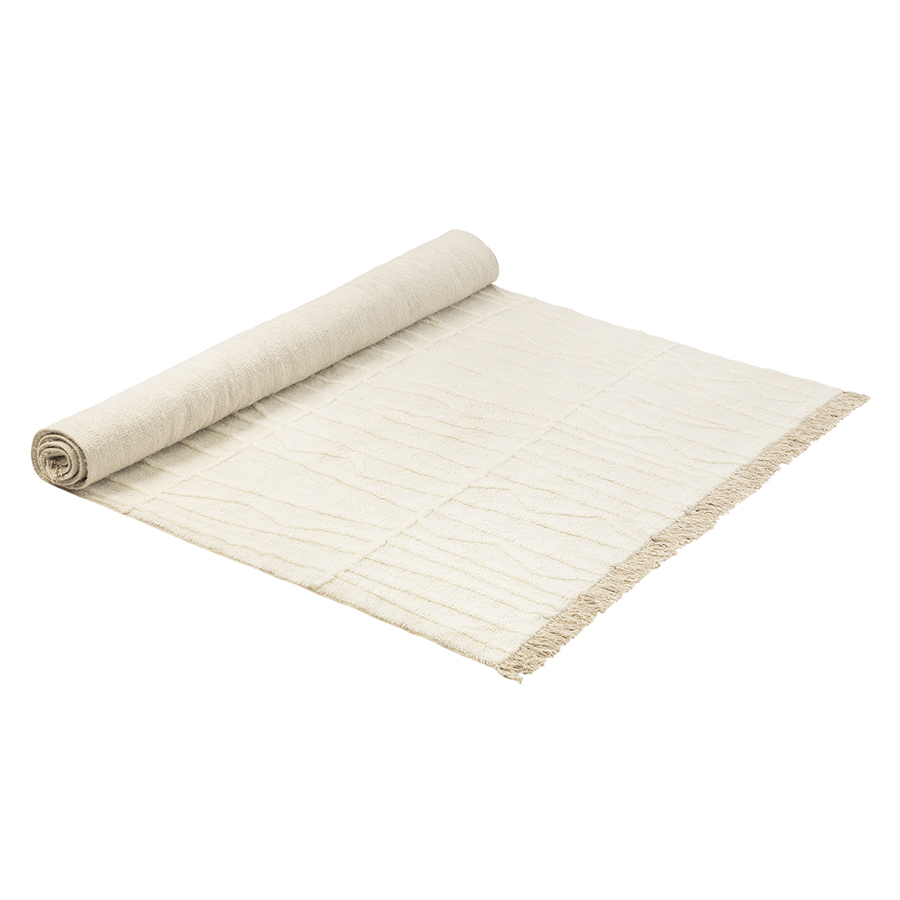 "Ковер Raipur из коллекции Ethnic, изготовленный из натуральных материалов, сделает любой интерьер более комфортным и поможет в создании теплой, уютной обстановки. Сочетание новозеландской шерсти высокого качества и износостойкого хлопка гарантирует изделию прочность, долговечность и простой уход. Материалы экологичные, обладают хорошими тепло- и звукоизоляционными свойствами, обеспечивая в помещении приятную, спокойную атмосферу. Благодаря нейтральному оттенку напольное покрытие идеально вписывается в современные минималистические интерьеры, великолепно гармонирует с мебелью и декором любой цветовой гаммы. Элементы в виде объемного узора и бахромы привлекают внимание и делают дизайн интересным.