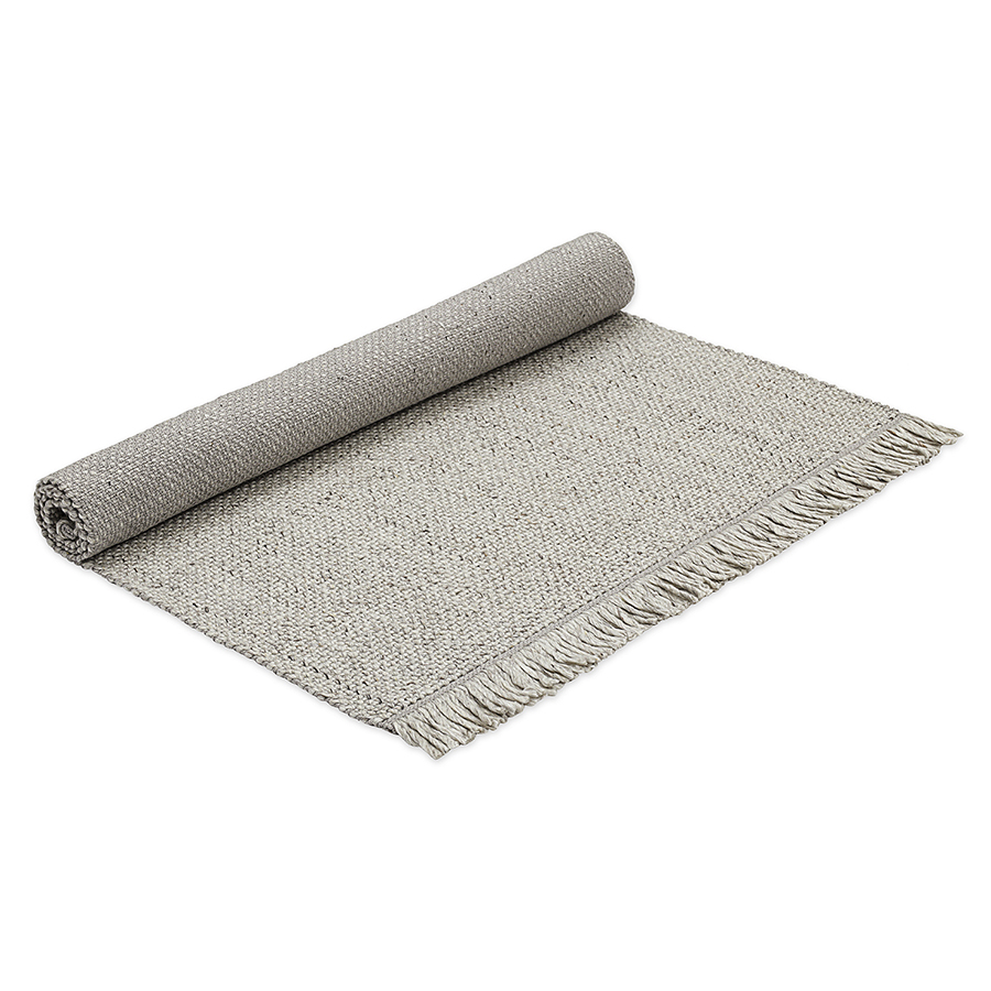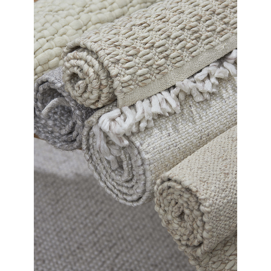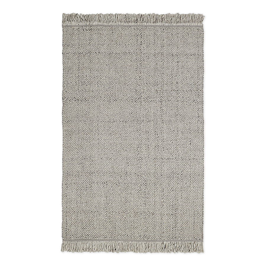 "Ковер из переработанного пластика светло-серого цвета из коллекции Ethnic – сочетание традиций, современного стиля и ответственного подхода к природе. Ведь каждая нить этого изделия – шаг к более экологичному будущему.