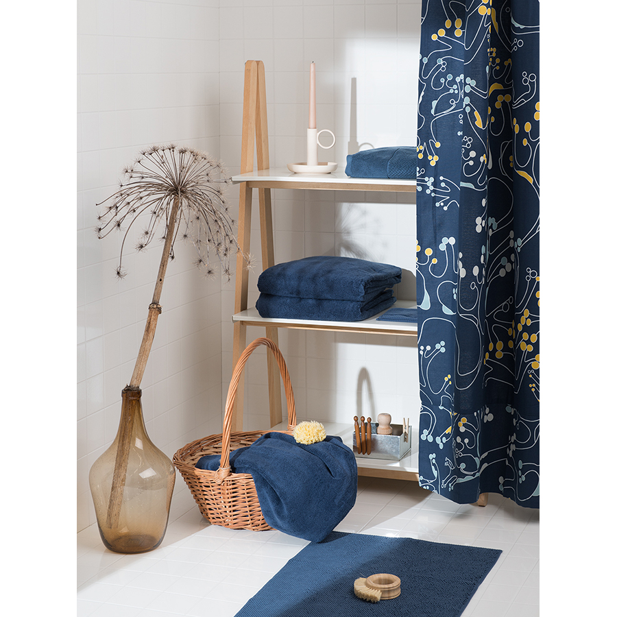 "Коврик для ванной ворсовый из чесаного хлопка темно-синего цвета из коллекции Essential подарит ощущение нежности и комфорта до и после водных процедур и понравится ценителям натуральных материалов. Изделие выполнено из лучших сортов длинноволокнистого хлопка с тщательным прочесыванием, что значительно улучшает его качество. Коврик быстро впитывает влагу, оставляя приятное ощущение свежести и чистоты. Благодаря своему качеству изделие обладает повышенной износостойкостью: хорошо держит форму и сохраняет впитывающие свойства на протяжении долгого времени.