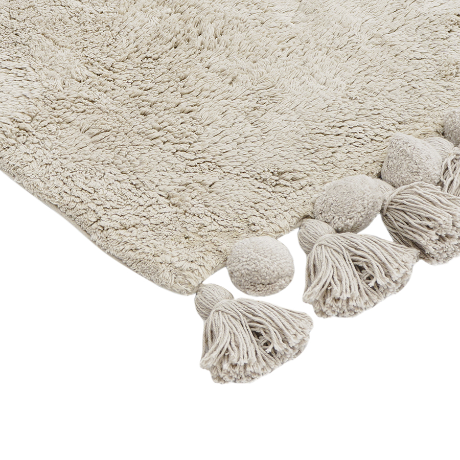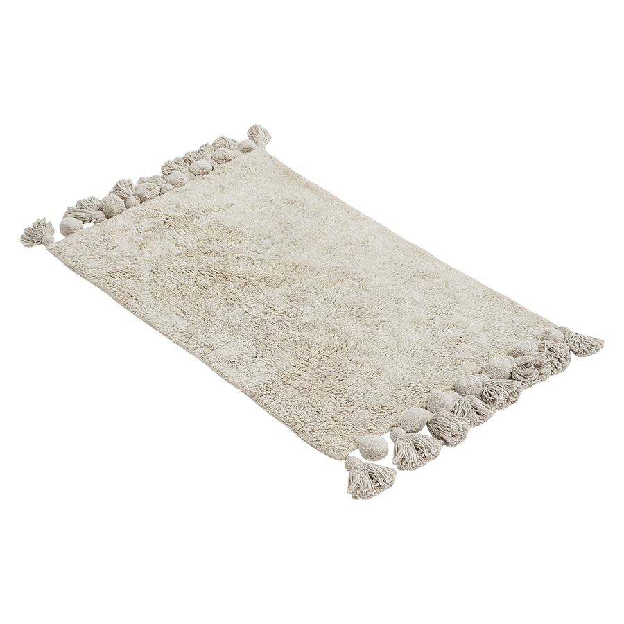 "Коврик для ванной из коллекции Essential понравится ценителям натуральных материалов, а также поклонникам эко-стиля и эклектичных интерьеров. Изделие из 100%, хлопка имеет приятную на ощупь фактуру, быстро впитывает влагу, оставляя ощущение свежести и чистоты. Натуральный материал не вызывает аллергических реакций, не электризуется, легко чистится и сохраняет привлекательный вид долгие годы. Декоративные элементы в виде кисточек делают акцент на интересном дизайне.
