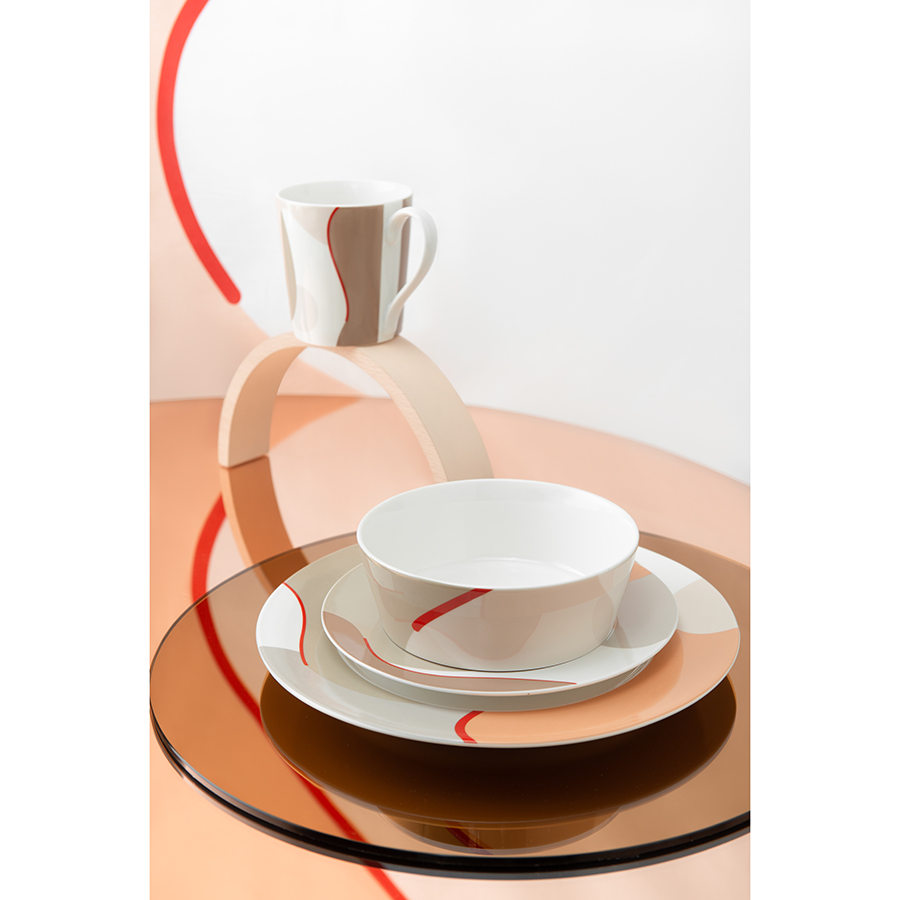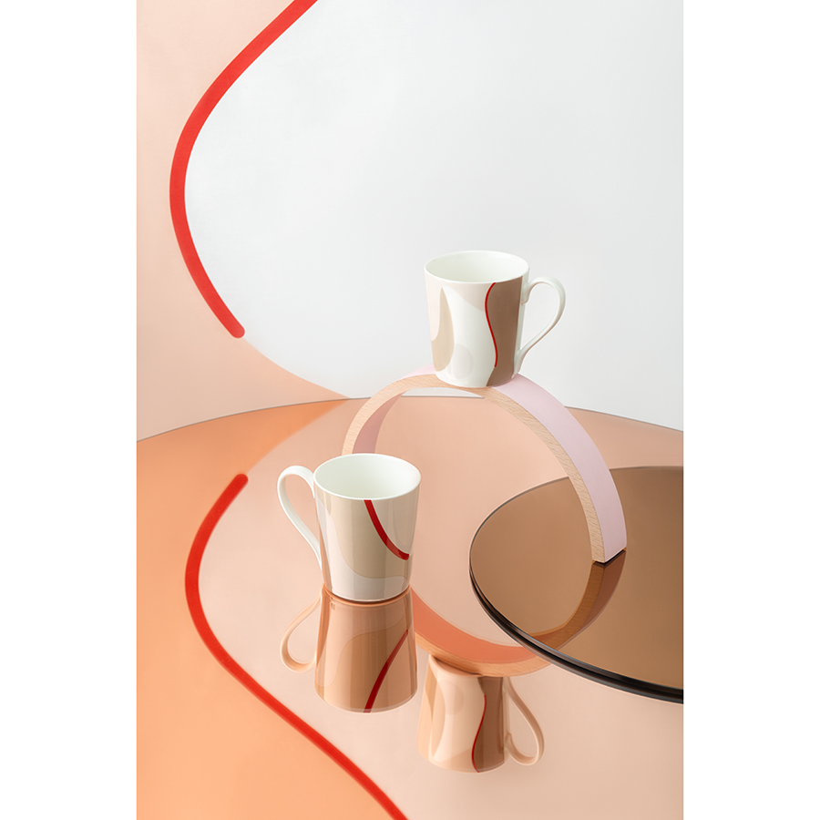 "Кружка бежевого цвета с авторским принтом из коллекции Freak Fruit прекрасно подходит для подачи горячих и холодных напитков. Оригинальный дизайн в духе абстракционизма сделает теплее атмосферу за столом. Принт не имеет повторяющегося раппорта и представляет собой единую законченную картину.
