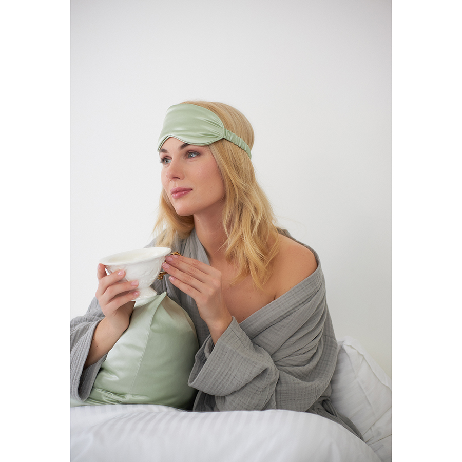 Маска для сна из натурального шелка мятного цвета из коллекции Essential, Tkano