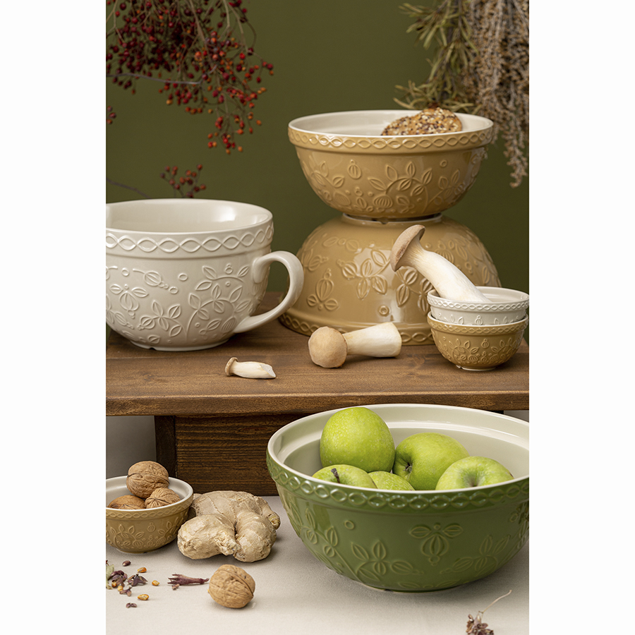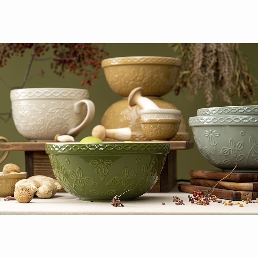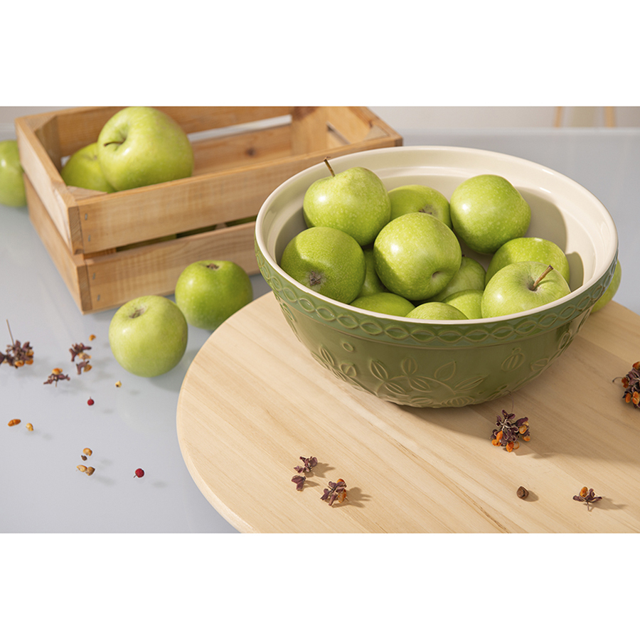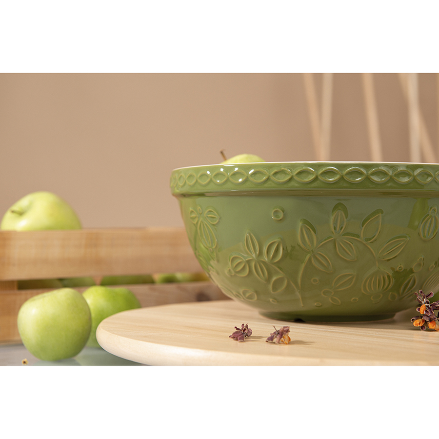 "Миска зеленого цвета с рельефным узором Ягоды Тайги из коллекции Russian North облегчит процесс приготовления блюд и подойдет для сервировки. Посуда предназначена для замешивания теста, смешивания ингредиентов, а также подачи салатов или фруктов. Изделие украшено рельефным растительным узором в виде стилизованных веточек с ягодами и листьями.