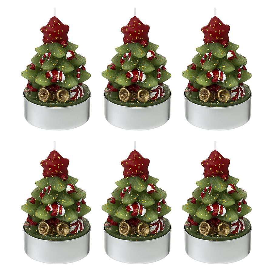 - Свечи выполнены в виде новогодних ёлок, что делает их не только источниками света, но и украшением интерьера.